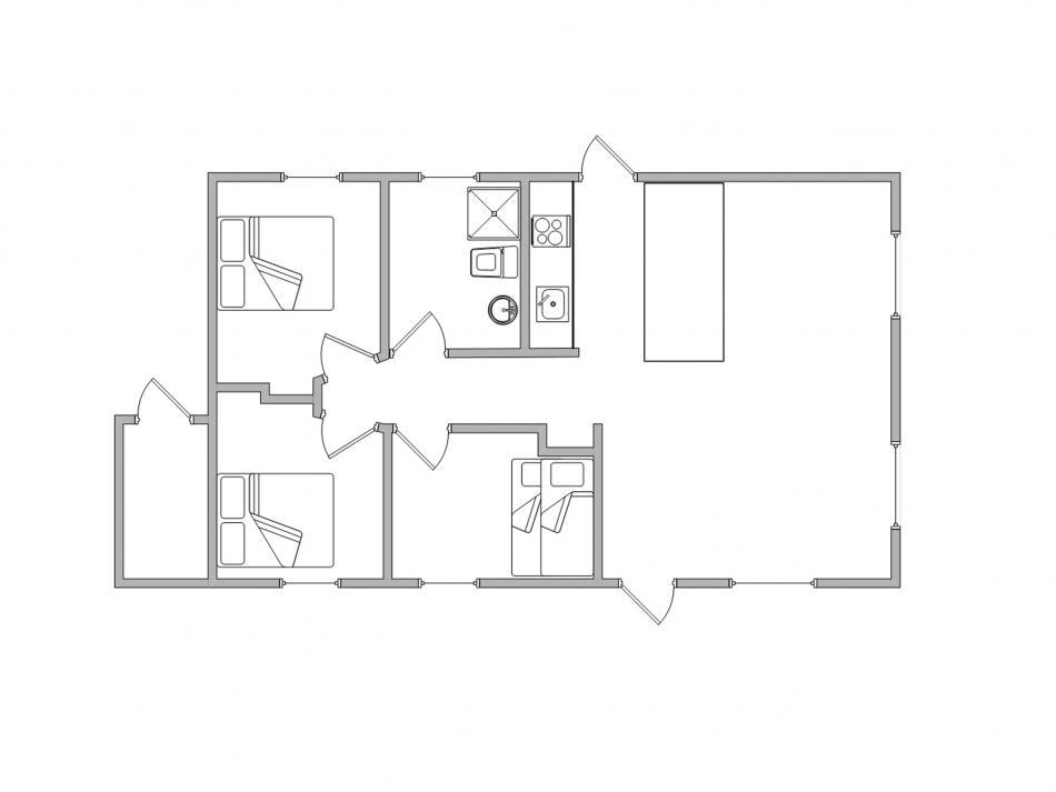 Die schöne und helle Einrichtung des Hauses zieht sich von der Küche bis zum gemütlichen Wohnbereich, welcher mit Rattanmöbeln, TV, Radio und kostenlosem Internetzugang ausgestattet ist. Bis zu 6 Personen kommen in diesem Ferienhaus unter, insgesamt gibt es 3 Schlafzimmer, 2 mit Doppelbetten und in dem letzten steht ein Etagenbett. Das Badezimmer verfügt über eine Dusche und Fußbodenheizung.
