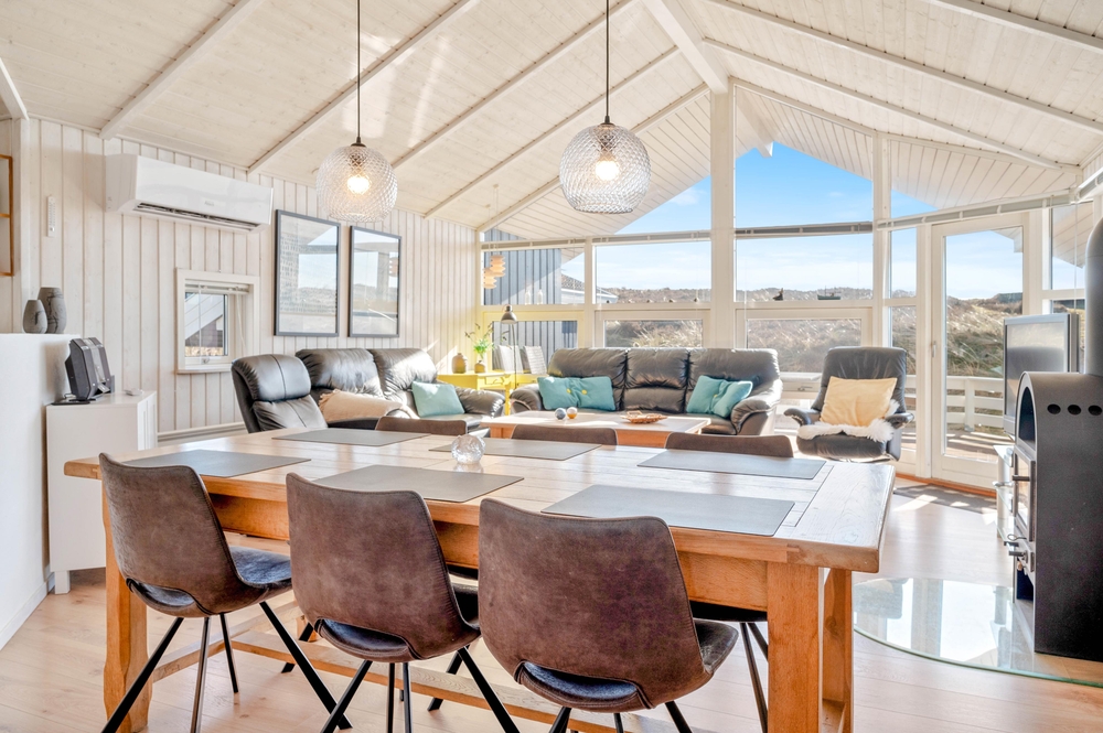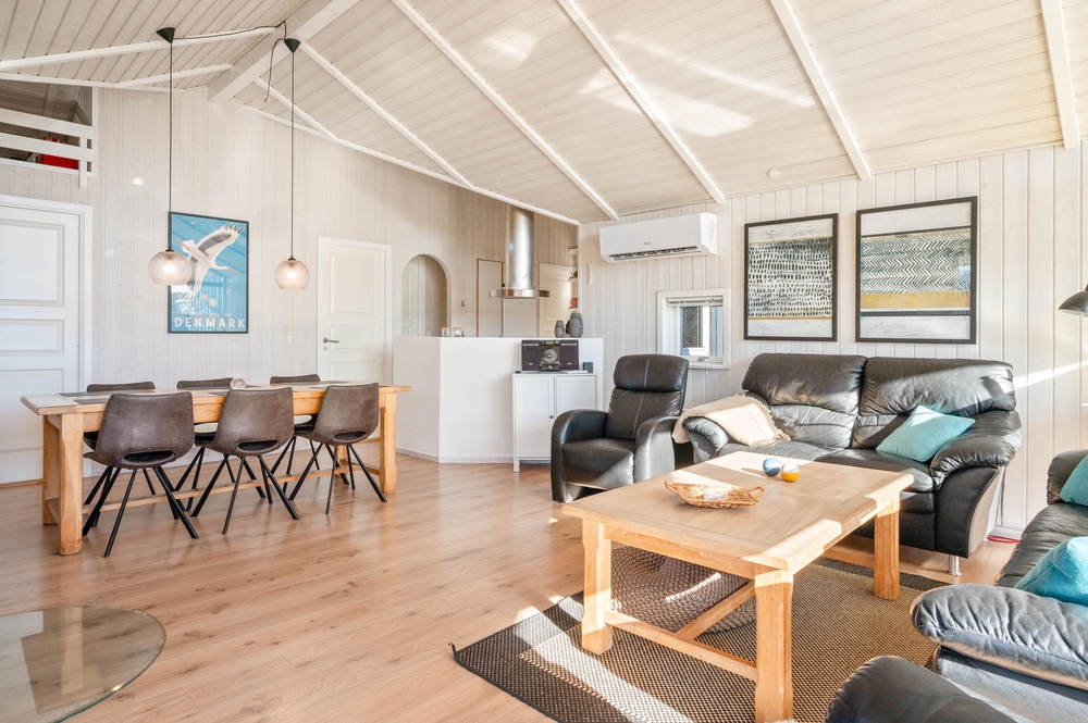 In dem schönen Holzferienhaus in Bjerregard ist Platz für 6 Personen und eure geliebten Vierbeiner sind auch gern gesehene Gäste. Im Innenbereich erwarten euch ein schöner Wohnraum mit Kaminofen und Zugang zu einem Schlafboden, sowie eine große Fensterfront mit Blick auf die Terrasse.