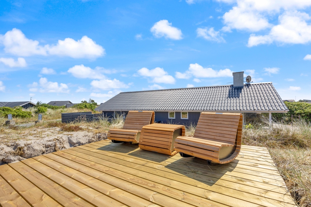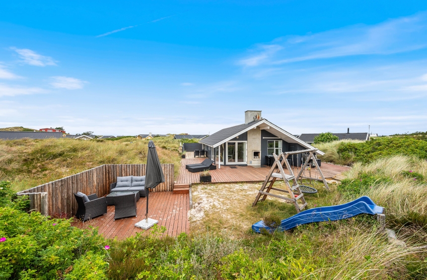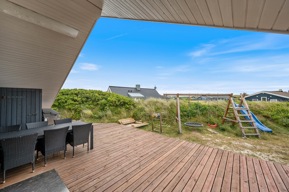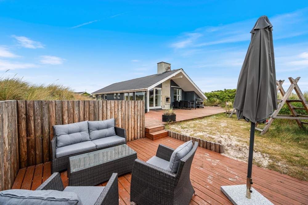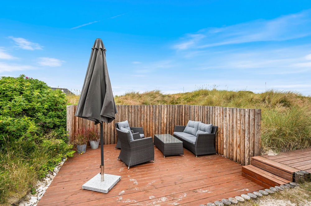 Die Terrasse ist abgeschirmt und teilweise überdacht, somit könnt ihr den ganzen Tag auf der Terrasse verbringen. Wenn die Sonne hinter den Dünen untergegangen ist und ihr abends mit der Familie grillt, sorgt der offene Kamin auf der Terrassse für angenehme Wärme und verlängert so die Zeit, die ihr an der frischen Luft genießen könnt.