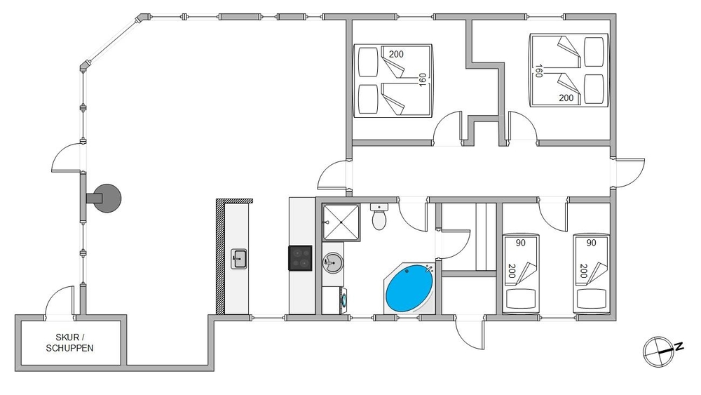 In diesem gepflegten Ferienhaus kannst du einen tollen Urlaub mit langen Spaziergängen am Strand verbringen. Im Sommer kannst du auf der großen, abgeschirmten Terrasse die Sonne genießen und abends grillen. Im Winter kannst du es dir dafür in der Sauna, dem Whirlpool sowie vor dem wärmenden Kamin gemütlich machen.