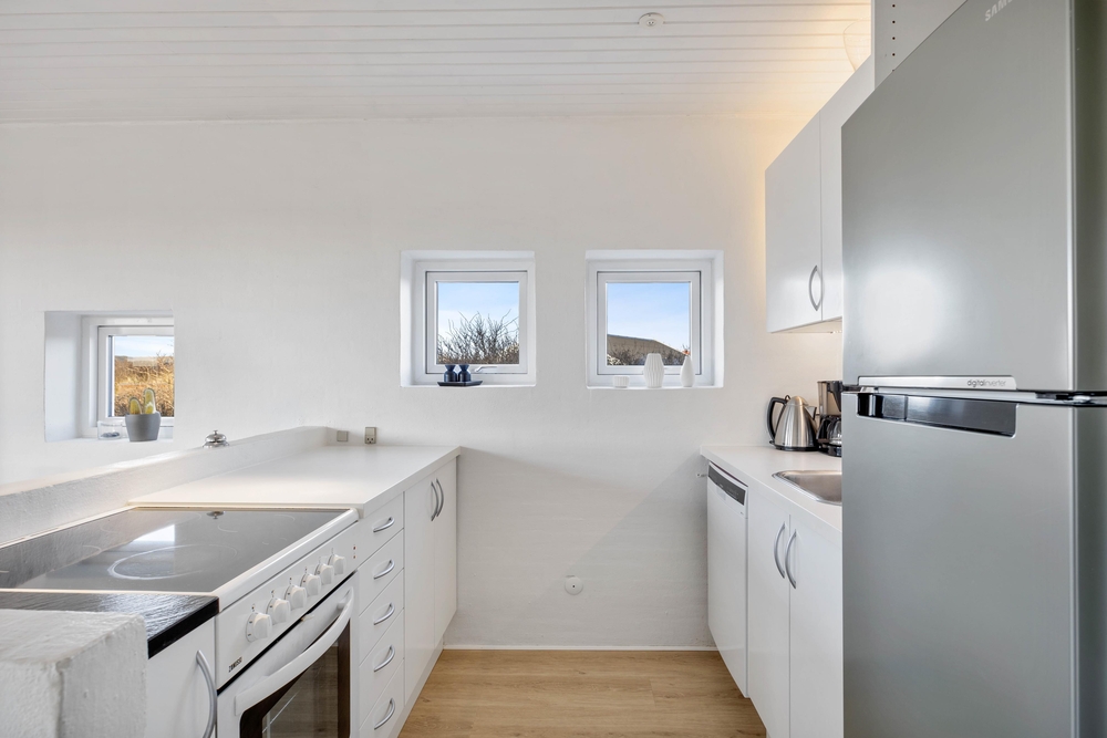 Auf der anderen Seite findet ihr den malerischen Ringkøbing Fjord ? ein Paradies für Wassersportler mit zahlreichen Surfspots, und idyllischen Rad- und Wanderwegen. Auch euer Angelglück könnt ich hier versuchen. Für den kleinen Einkauf steht euch im Feriengebiet zudem der örtliche Kaufmann zur Verfügung. Hier bekommt ihr auch morgens frische Brötchen und die eine oder andere dänische Leckerei.