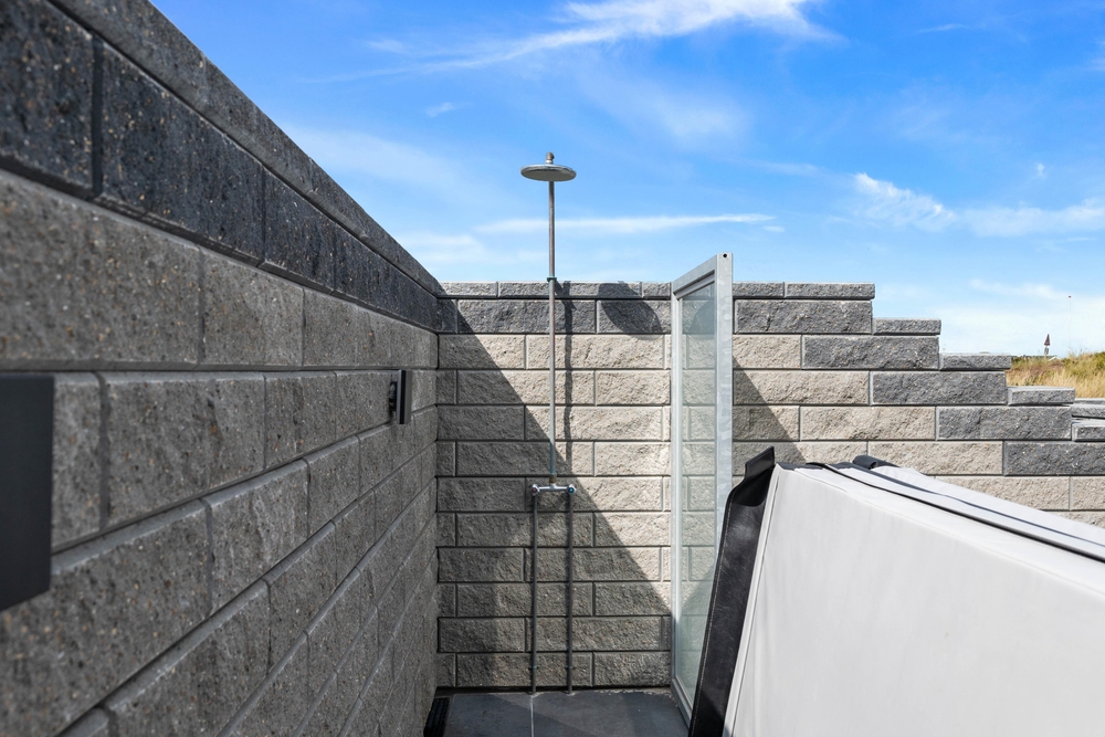Den feinen Sand vom Strand könnt ihr unter den Außendusche abspülen, die von April bis November genutzt werden kann.
