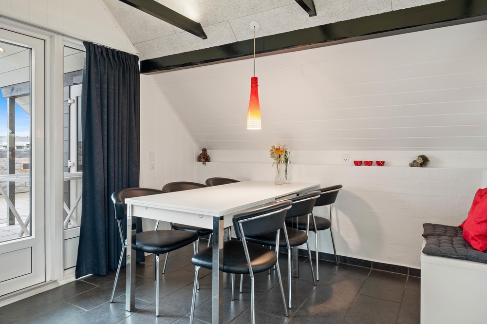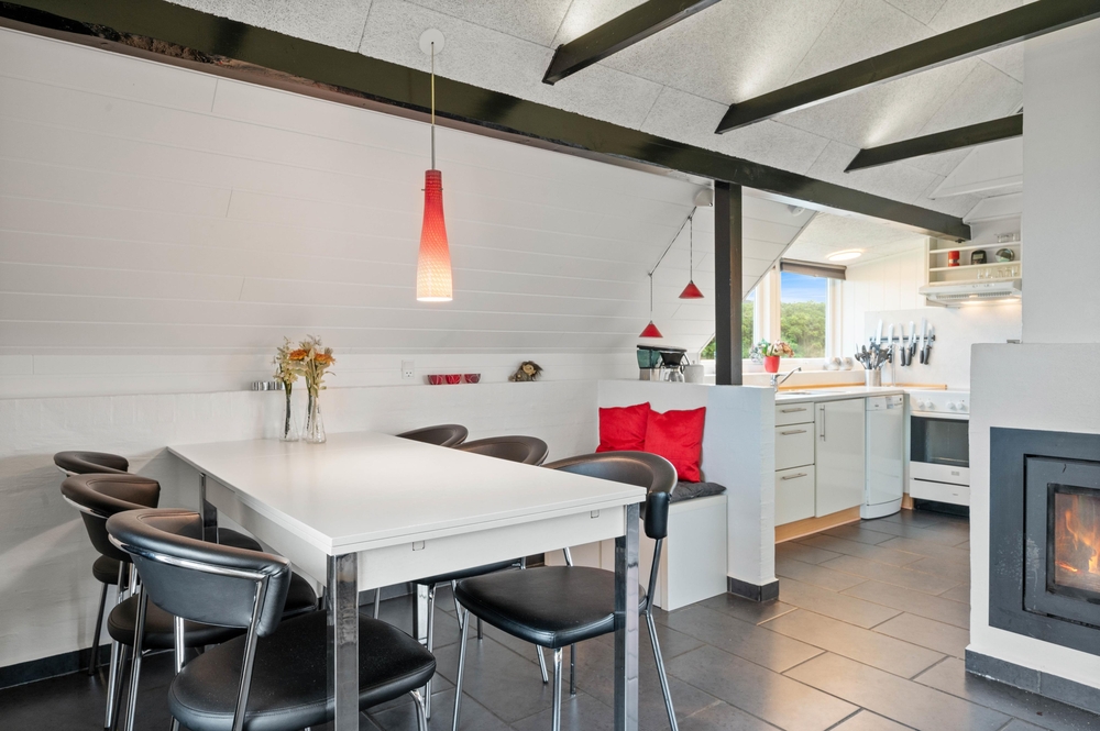 Dieses charmantes Holzhaus heißt euch mit hellen Holzwänden, hohen Decken und freigelegten Balken willkommen. Die ausgesuchten Möbel in der Essecke und im Wohnzimmer, die gut ausgestattete Küche und der schöne Holzofen laden zu einem entspannten Urlaub in Dänemark ein.