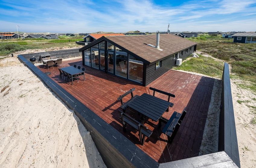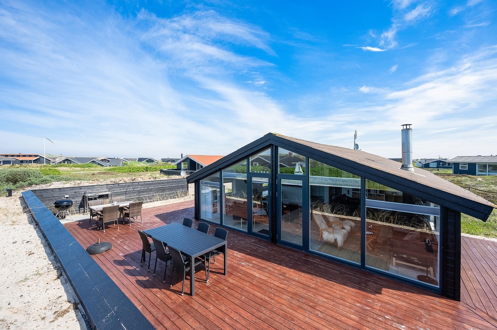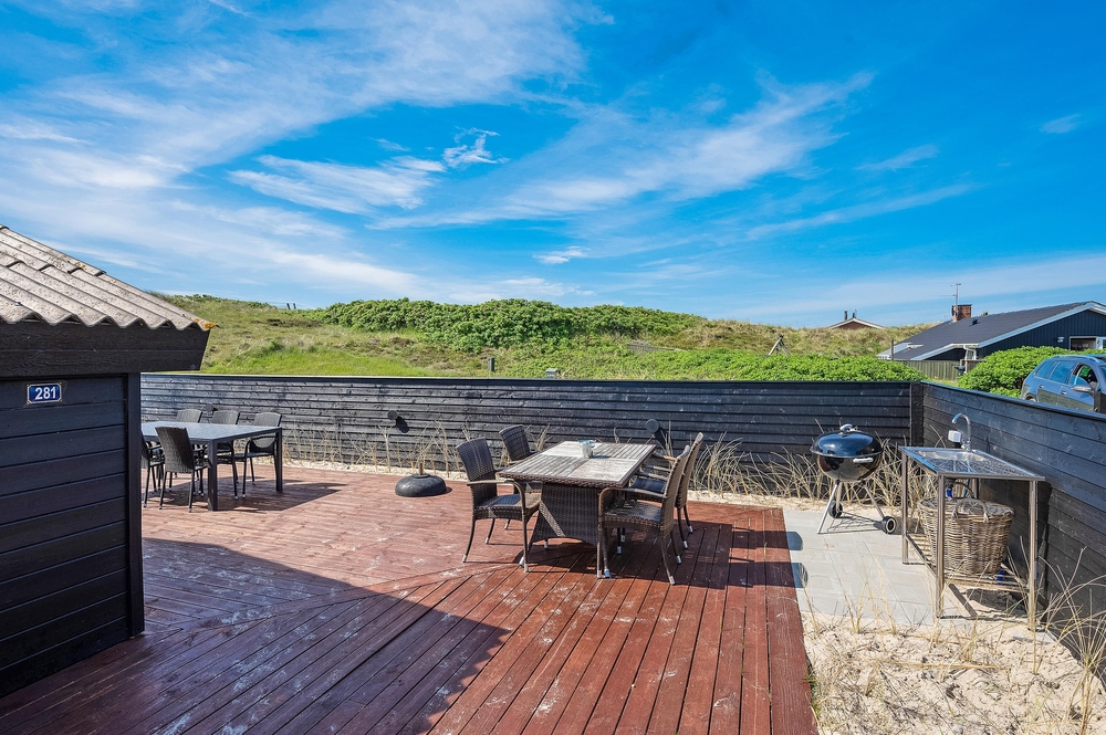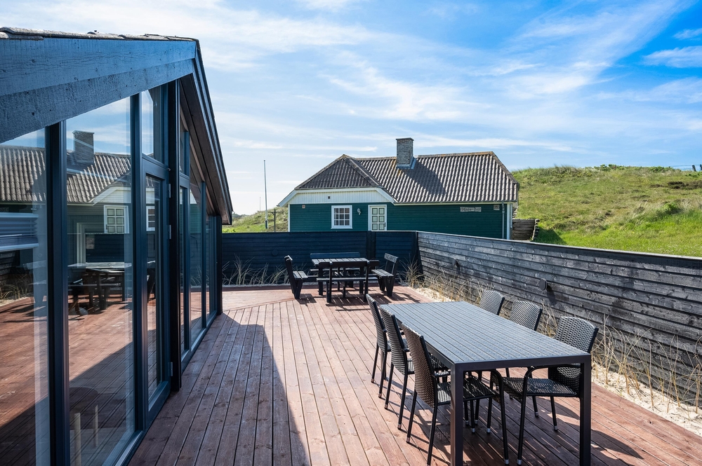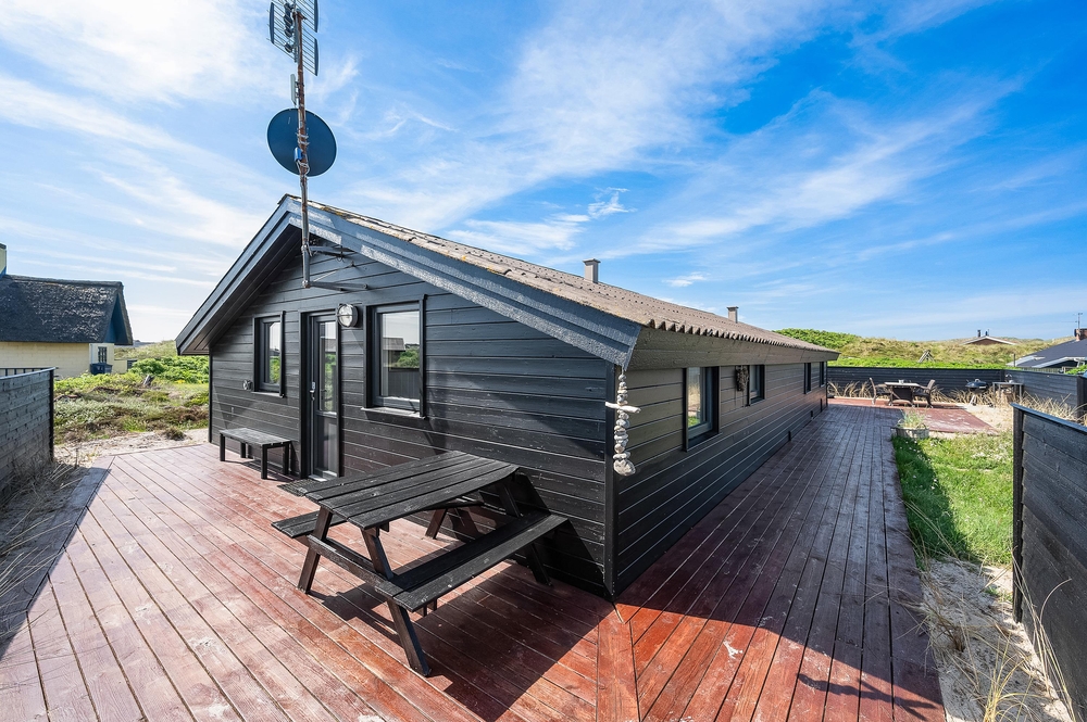 Am Haus gibt es eine mit Gartenmöbeln, Liegestühlen und Grill ausgestattete Terrasse, von welcher ihr einen guten Überblick auf die Umgebung habt. Und wer Sehnsucht nach dem Meer hat, kann dies gerade an etwas stürmischeren Tagen gut hören. Ohnehin seid ihr in wenigen Minuten schon am Strand und unbedingt solltet ihr euch den fantastischen Sonnenuntergang hoch oben von der Düne anschauen.