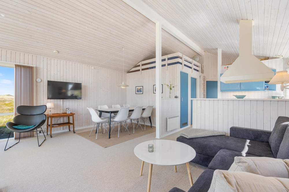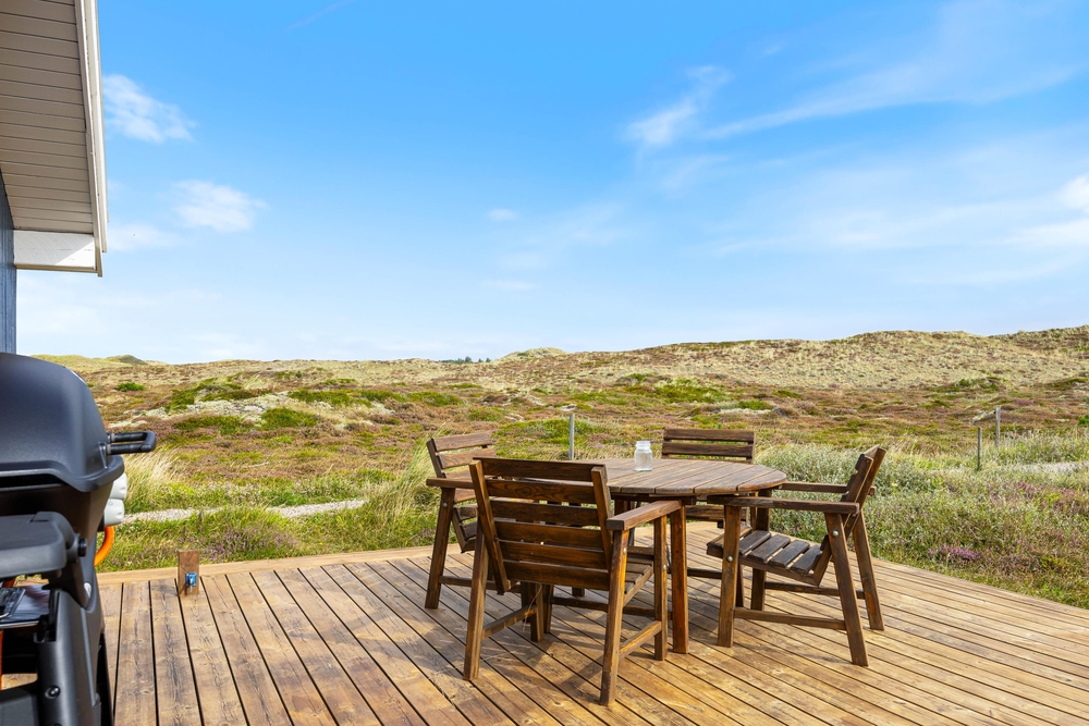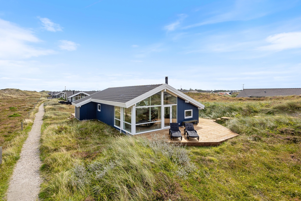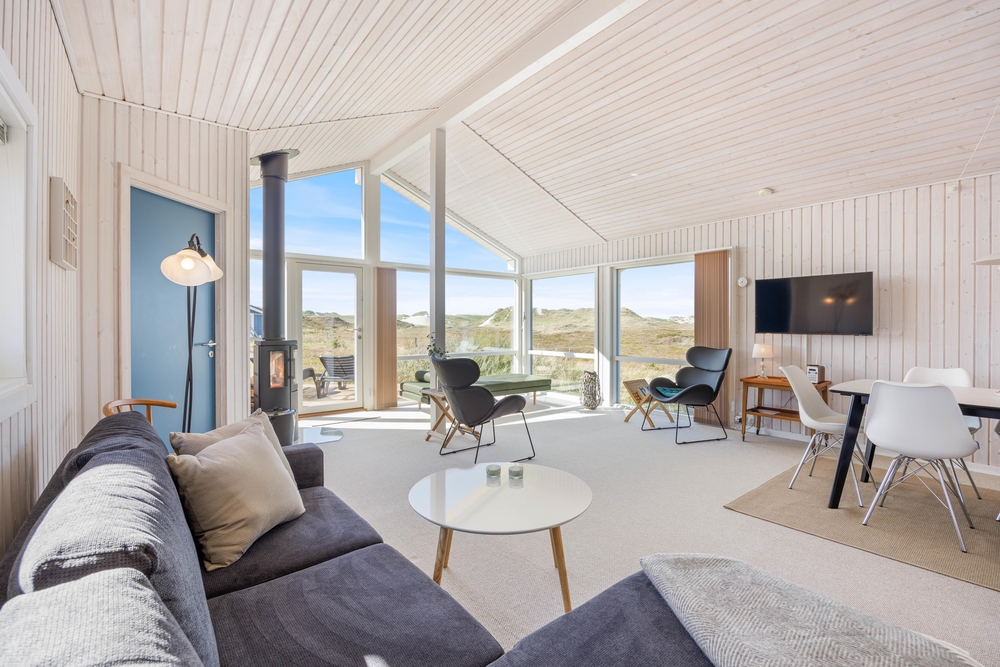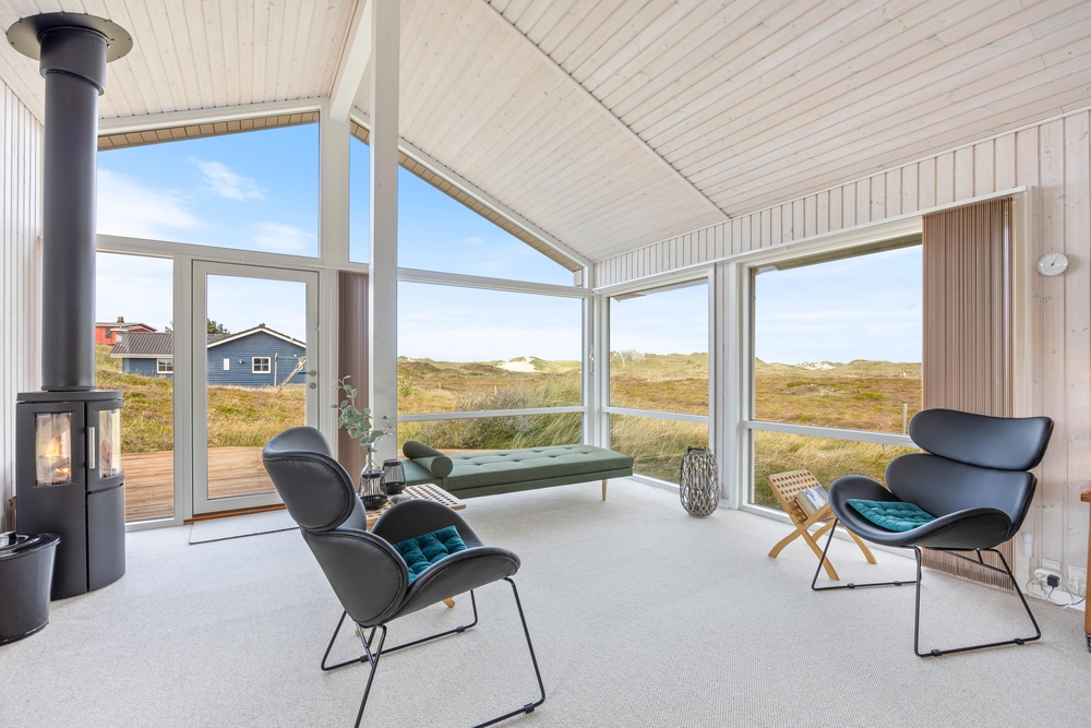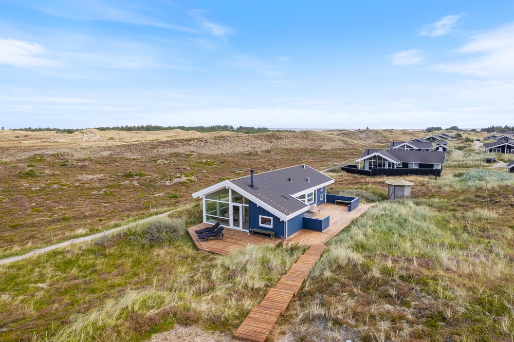 Folgt dem Holzsteg über das Dünengras zu eurem gemütlichen Ferienhaus im Bjerregårdsvej 308, an der dänischen Westküste. Am Rande des zauberhaften Heide- und Dünengebietes gelegen, könnt ihr hier einen entspannten Urlaub mit einer einmaligen Panoramaaussicht genießen.