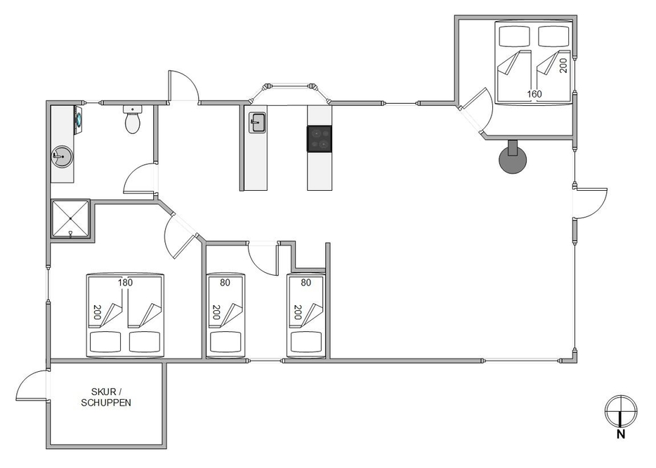 Ist euch nach mehr Unterhaltung, könnt ihr einen Film schauen oder die Bluetooth-Lautsprecheranlage nutzen. In der offenen Küche findet ihr alles, um leckere Mahlzeiten zuzubereiten. Wie wäre es einmal mit einem typisch dänischen Menü? Um den Abwasch kümmert sich danach der Geschirrspüler.