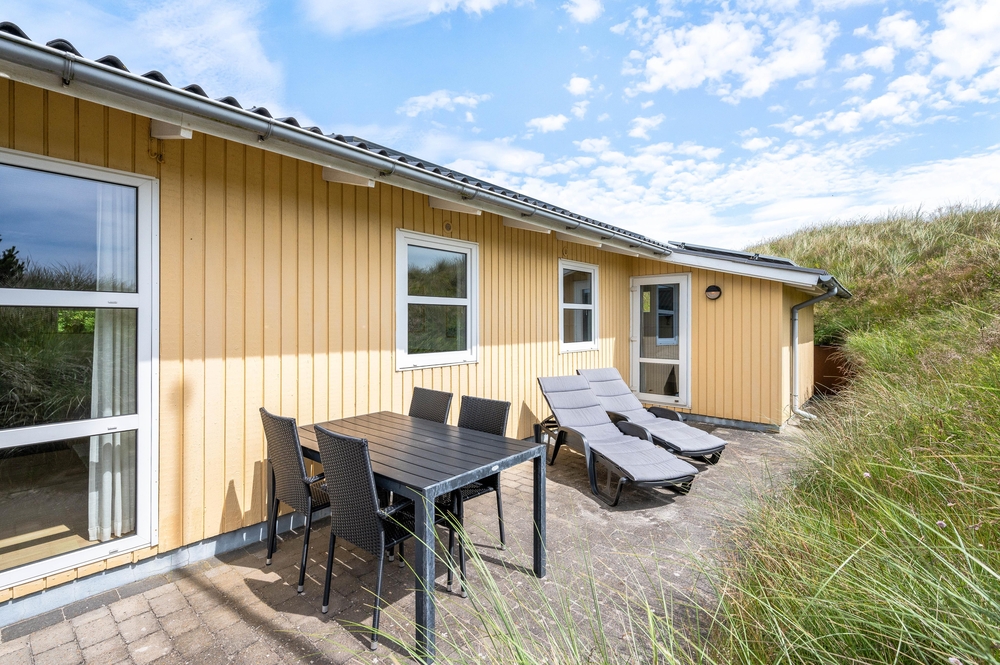 Auf einem hügeligen Dünengrundstück, nicht weit vom Strand entfernt, liegt dieses gepflegte Ferienhaus. Das Ferienhaus ist geräumig und schön eingerichtet, desweiteren hat es zwei herrliche Terrassen, eine davon teilweise überdacht. Auf der Südwestterrasse ist man bestens vor dem Wind geschützt.