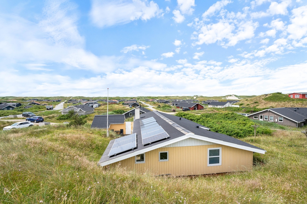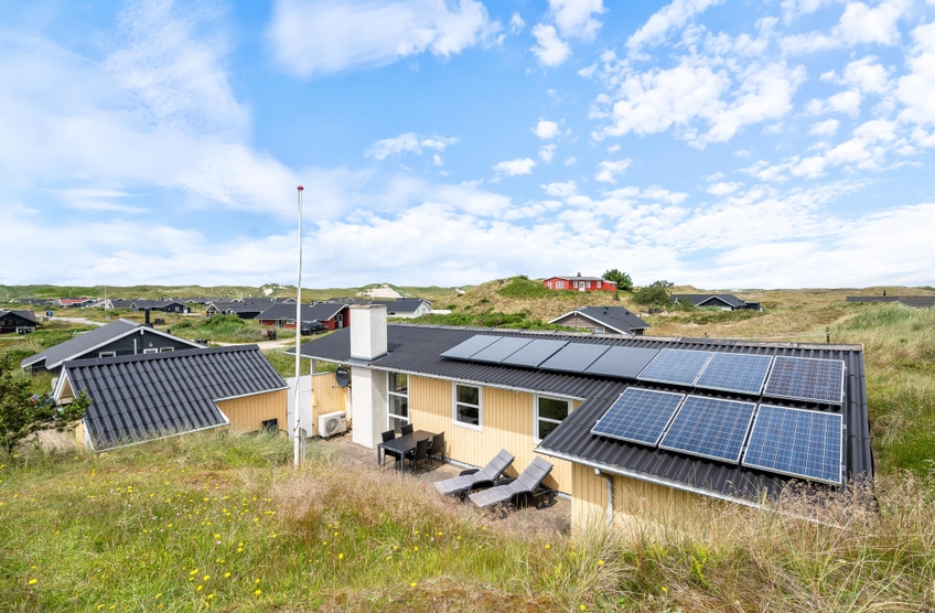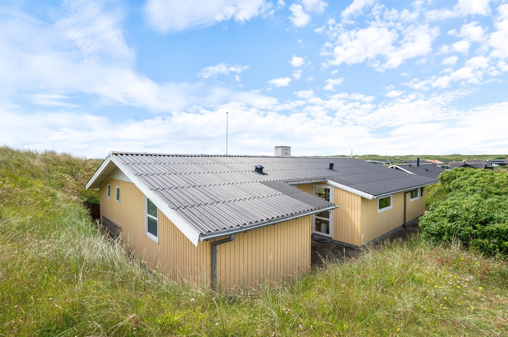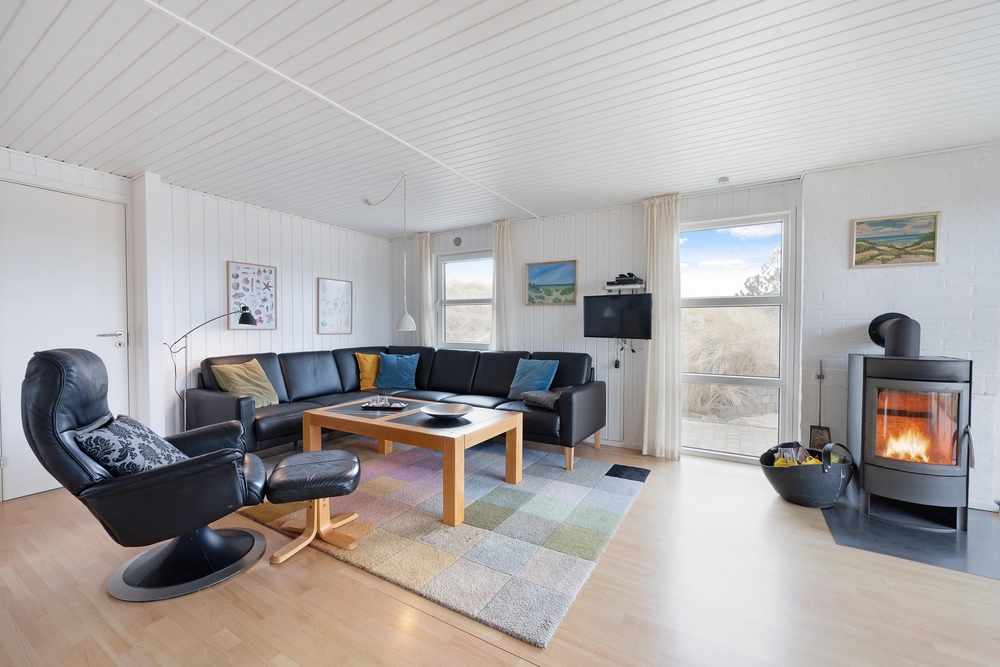 Dieses Ferienhaus liegt auf einem hügeligen Naturgrundstück in Bjerregård. Das Gebiet ist für die tolle Dünenlandschaft und den kurzen Abstand zur Nordsee bekannt.