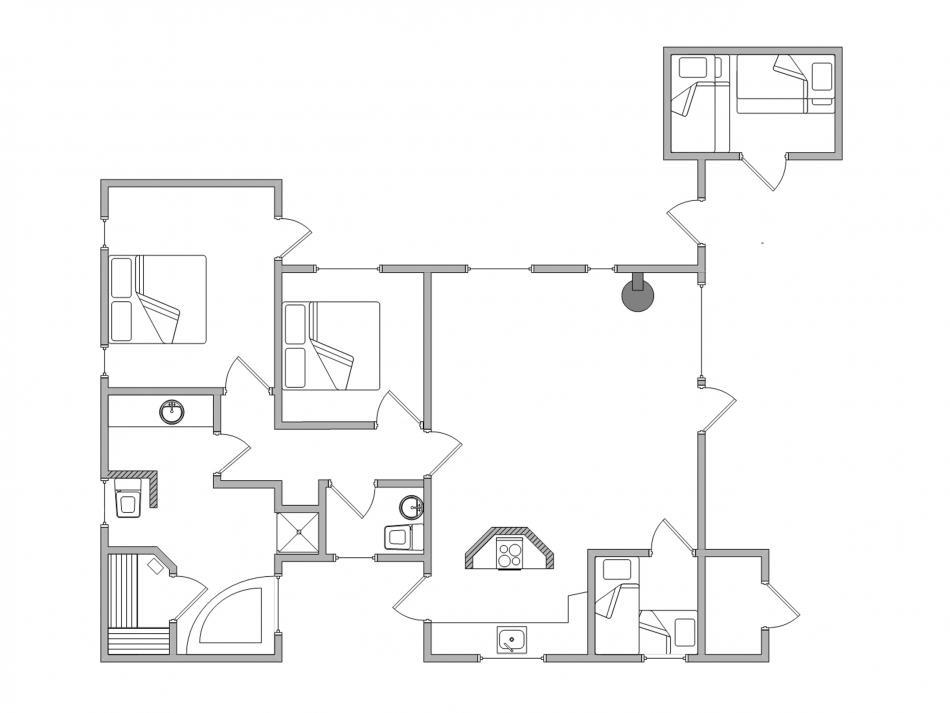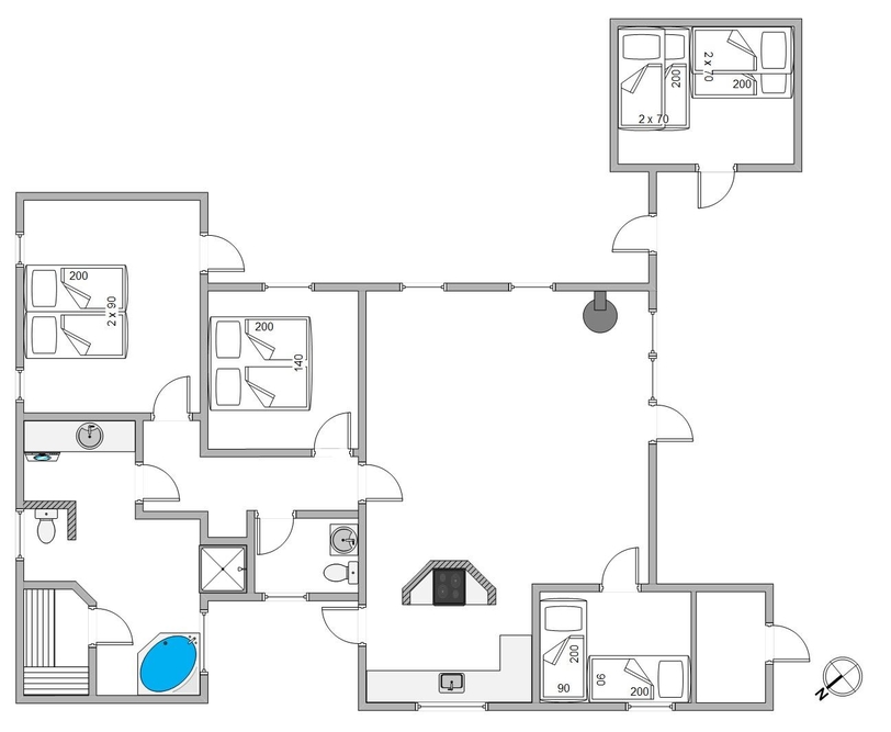 Das Ferienhaus bietet Platz für sechs Personen in drei Schlafzimmern, von denen zwei mit einem Doppelbett ausgestattet sind. Das letzte Zimmer ist mit einem Einzelbett ausgestattet, und es gibt auch ein Etagenbett, das von einem Kind benutzt werden kann. Außerdem gibt es einen schönen Anbau mit zwei Betten, so dass ihr euch nach Belieben einrichten können.