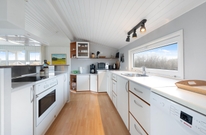 Das Ferienhaus ist hell und geräumig, so dass es sich die ganze Familie im Wohnbereich vor dem Kaminofen gemütlich machen kann. Da die Küche auch offen zum Wohnbereich gestaltet wurde, ist man auch beim Essen zubereiten zusammen.