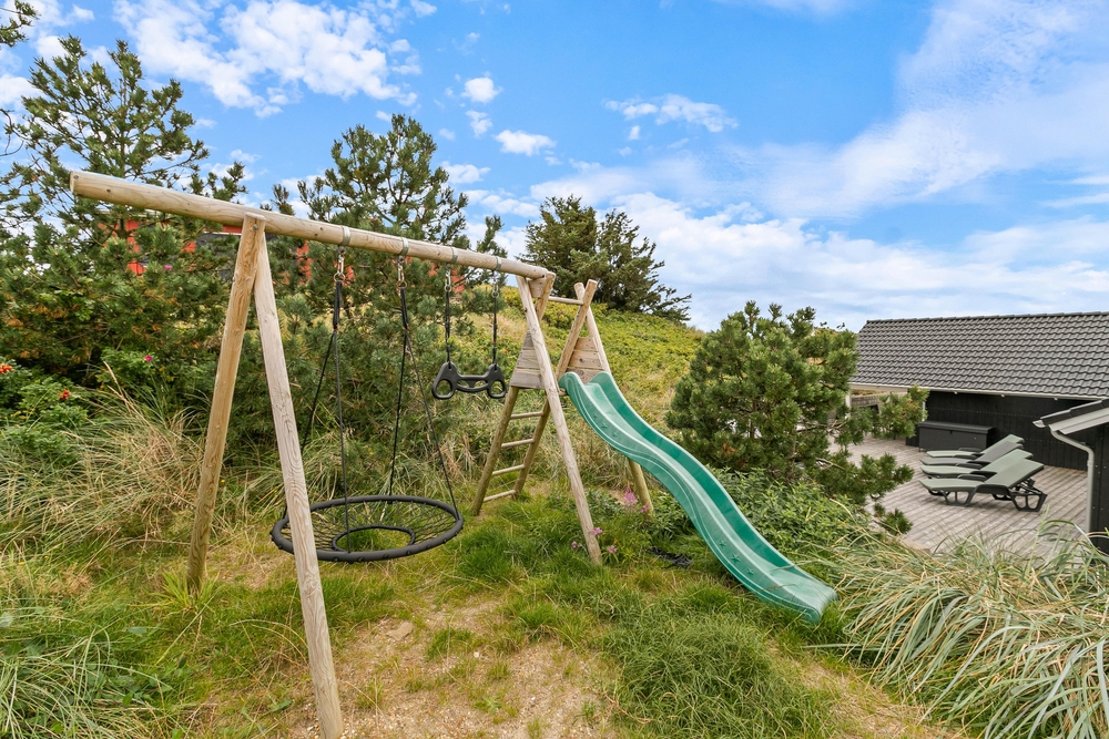 Auch an die kleinsten Gäste wurde im Außenbereich gedacht. Hier gibt es eine Schaukel für die Kids auf dem Dünengrundstück zu finden. Auch ein Ausflug zum Strand kann mit eingeplant werden, denn die Nordseeküste liegt nur 500m vom Ferienhaus entfernt.