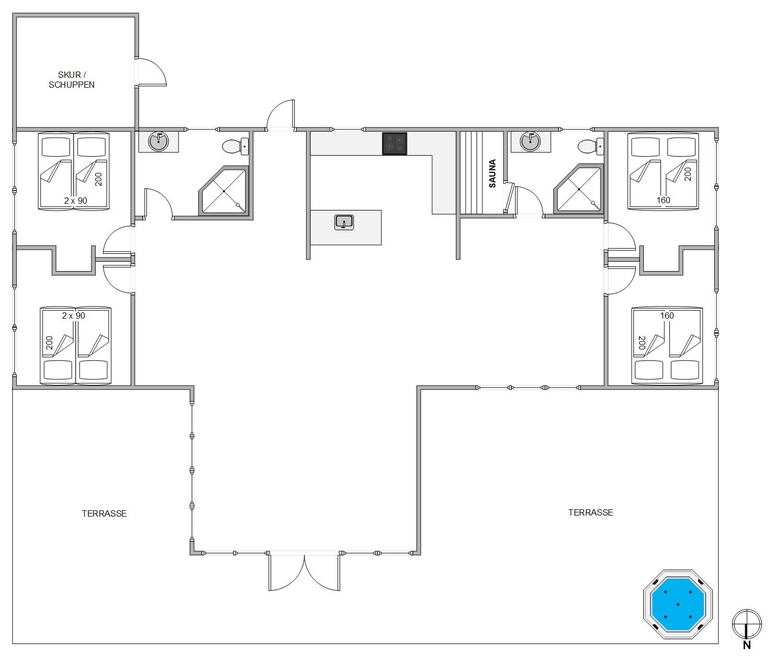 Herzlich willkommen in eurem wunderschönen Ferienhaus im Bjerregårdsvej 328B. Insgesamt habt ihr in diesem Ferienhaus Platz für 8 Personen und gerne dürfen euch auch eure beiden Hunde mit auf die Reise begleiten. Das Ferienhaus überzeugt mit modernster Ausstattung, unter anderem mit einem Außenwhirlpool für entspannte Wellnessabende auf der schönen Terrasse sowie zwei Badezimmern, wobei eines mit einer Sauna ausgestattet ist.
