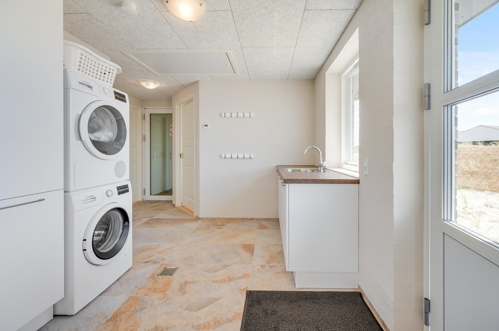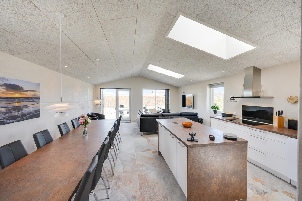 Mit nur 450m Abstand zum kilometerlangen Sandstrand der dänischen Westküste und einem beruhigenden Ausblick auf die Dünen, liegt dieses luxuriöse Ferienhaus im Herzen vom beliebten Bjerregård. Das gut ausgebaute Wegesystem lädt euch zu langen Spaziergängen und Radtouren ein, wodurch ihr die fantastische Natur mit seiner Dünen- und Heidelandschaft genießen könnt.
