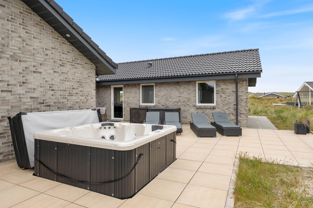 Nur 450m von der dänischen Westküste findet ihr dieses fantastische Luxus- Ferienhaus, welches im Jahr 2021 gebaut ist und alles an moderner Einrichtung bietet, was ihr für einen fantastischen Urlaub mit der ganzen Familie oder den besten Freunden benötigt. Pool, Außenwhilpool und Sauna ? hier erwartet euch Urlaub pur!