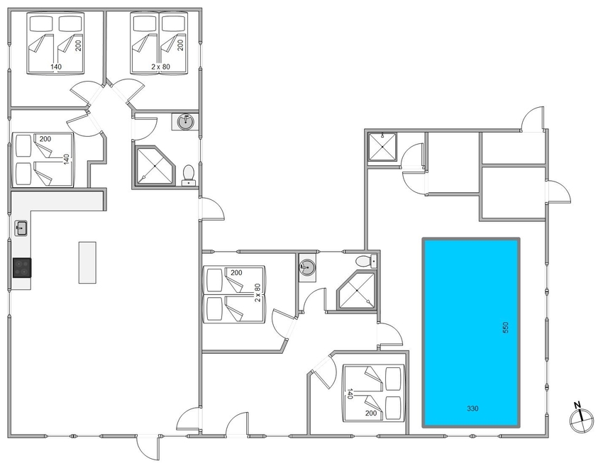 In dem im Jahr 2021 gebauten Sommerhaus findet ihr modernste Einrichtung und Platz für bis zu 10 Personen. Im dem Pool-Bereich, welcher sowohl zu Spaß und Entspannung einlädt, könnt ihr nach dem Schwimmen in der Infrarotsauna unter Sternenhimmel entspannen. Der Pool-Bereich wird optisch nach Außen durch dieselben Fliesen in warmen Tönen verlängert, wo ihr auf eine windgeschützte Terrasse gelangt.