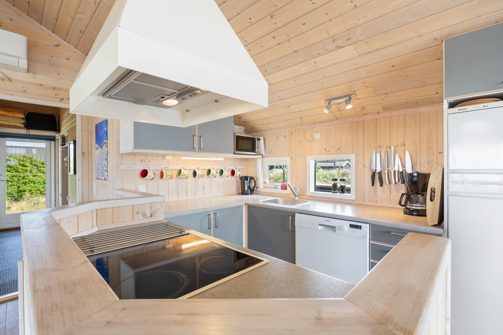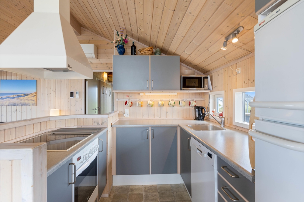 Die offene Küche lädt zu gemeinsamen Stunden hinter dem Herd ein, während andere Urlauber vielleicht am großen Esstisch die nächste Tour in das Umland von Bjerregård planen. Das Ferienhaus ist super ausgestattet und verfügt über einen Geschirrspüler und eine Waschmaschine, damit ihr euch keine Gedanken um den Haushalt machen müsst.