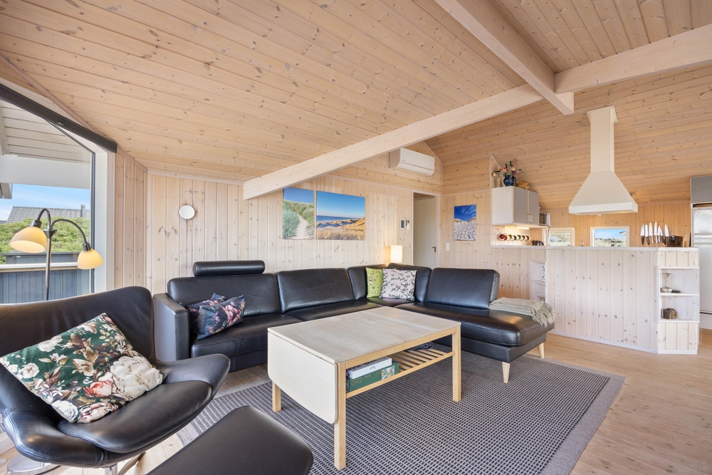 Im Wohnbereich wurden die gemütliche Sofaecke mit der offenen Küche und dem Essbereich vereint ? denn hier werdet ihr wohl die meiste Zeit im Ferienhaus verbringen. Direkt gegenüber von der Couch steht der Kaminofen, der euch rund um das Jahr tolle Wärme und eine schöne Urlaubsatmosphäre bietet.