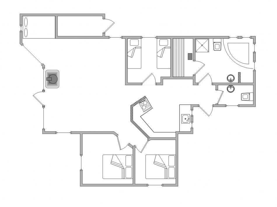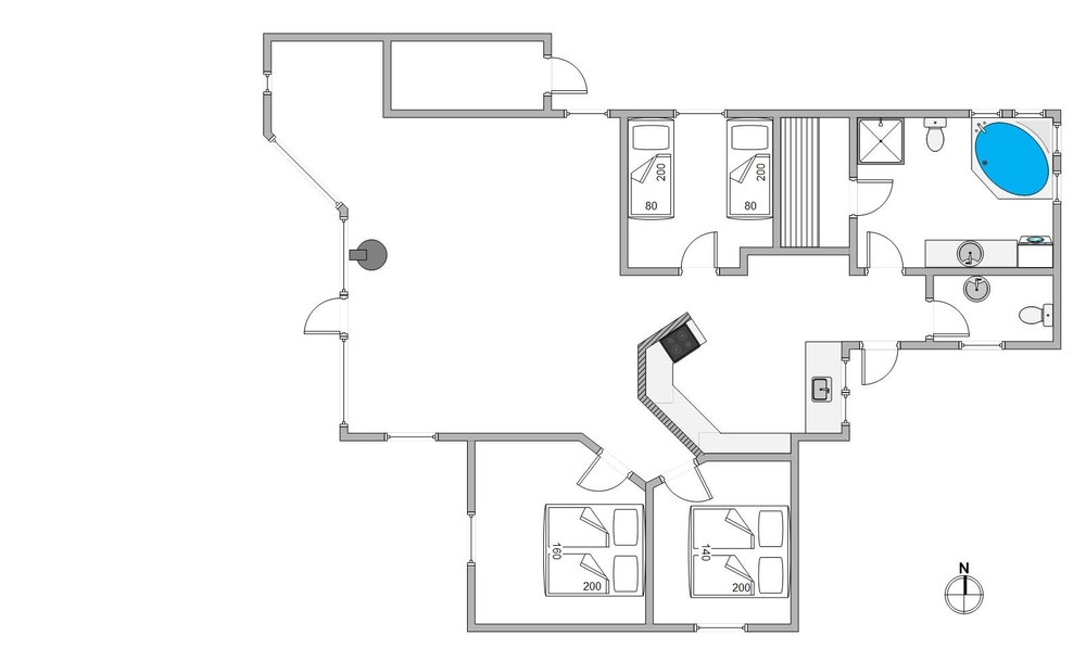 Außerdem gibt es noch einen Alkoven im Wohnzimmer, der auch als Schlafplatz genutzt werden kann. Es gibt ein großes Badezimmer mit Fußbodenheizung, Dusche, Waschmaschine, Wäschetrockner, Whirlpool und eine Sauna. Desweiteren gibt es noch ein Gästetoilette.