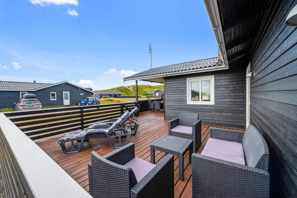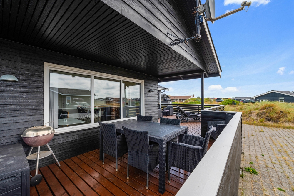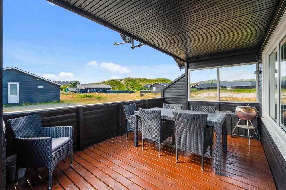 Während ihr euch in den bequemen Gartenmöbeln entspannt und das nahe Meer rauschen hört, können eure Hunde oder kleineren Kinder frei auf der geschlossenen Terrasse laufen. Dank der teilweisen Überdachung kann auch ein Regenschauer euch nicht schrecken. Genießt die Aussicht in die Dünen und die frische Meeresluft, während ihr euer Lieblingsbuch lest oder ein leckeres Stück Kuchen verspeist.