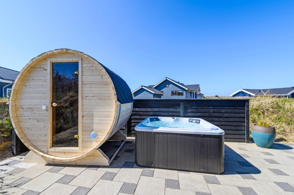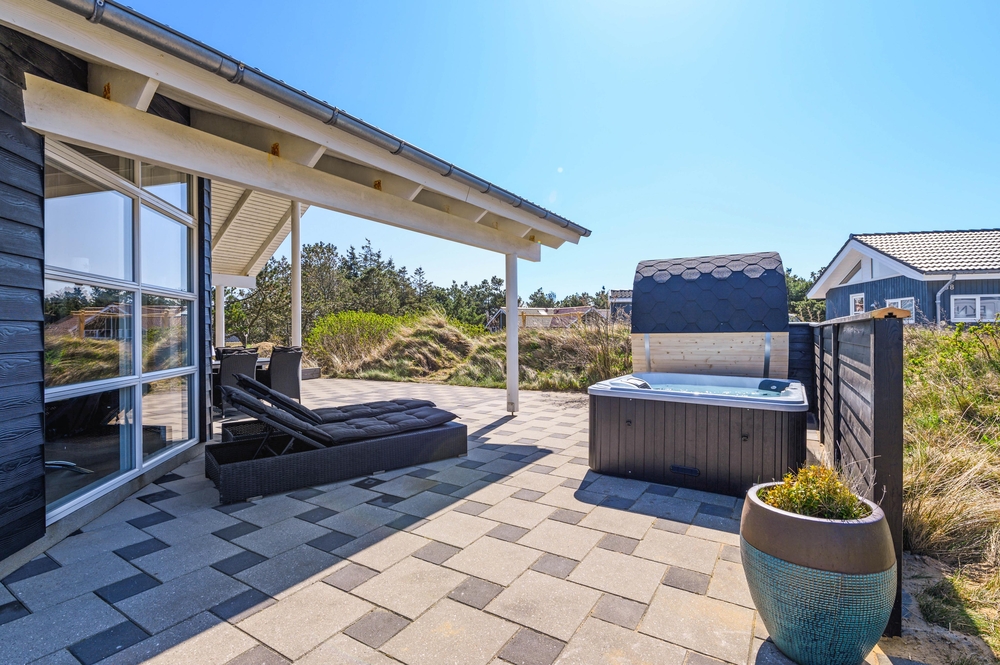 Im Bjerregårdsvej 38 B findet ihr dieses moderne Ferienhaus für 8 Personen. Das Ferienhaus hat einen Whirlpool innen und außen, eine Außensauna, zwei Badezimmer und eine schöne, große Terrasse, die teilweise überdacht ist und zu gemütlichen Grillabenden einlädt, während ihr Wein aus dem Weinkühlschrank genießt. Am Ferienhaus in Bjerregård ist ein E-Auto Ladeanschluss vorhanden.
