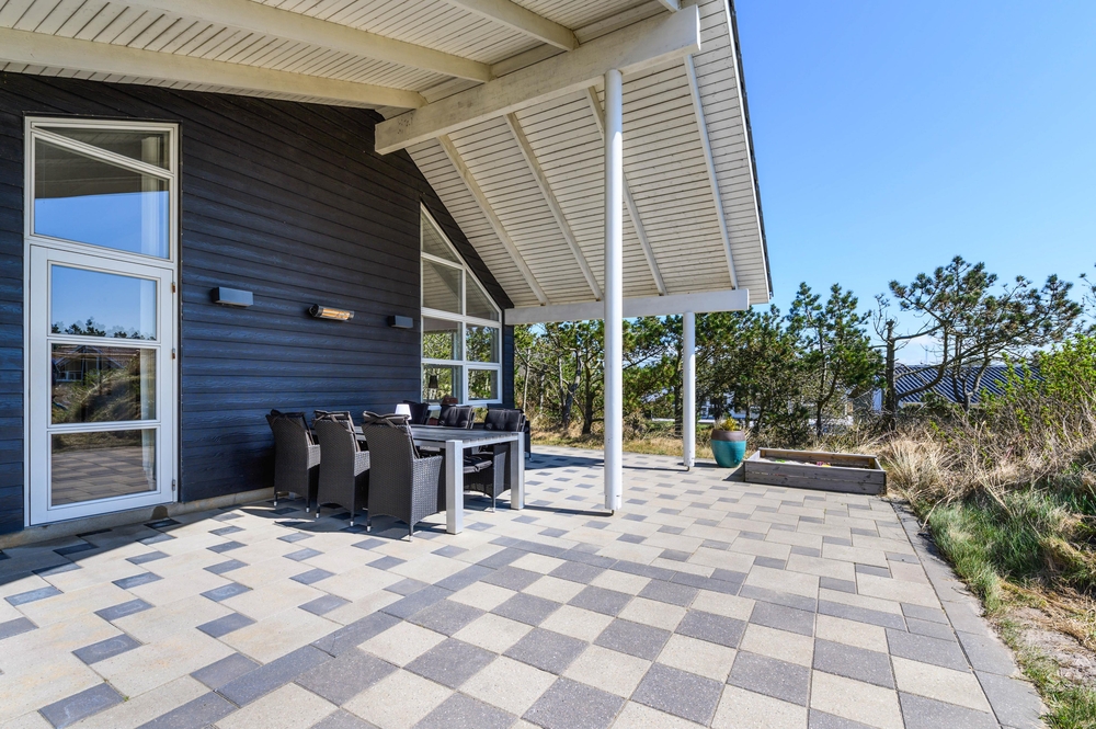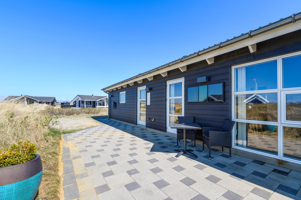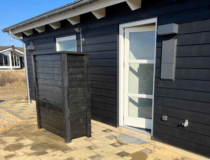 Die Terrasse ist insgesamt 160 m² groß, und verläuft um das ganze Ferienhaus, damit ihr den ganzen Tag auf der Terrasse verbringen könnt. Hier findet man immer eine windgeschüzte Stelle. An warmen Sommertagen kann man sich ideal unter der Außendusche abkühlen. Die Außendusche ist von April bis November verfügbar.