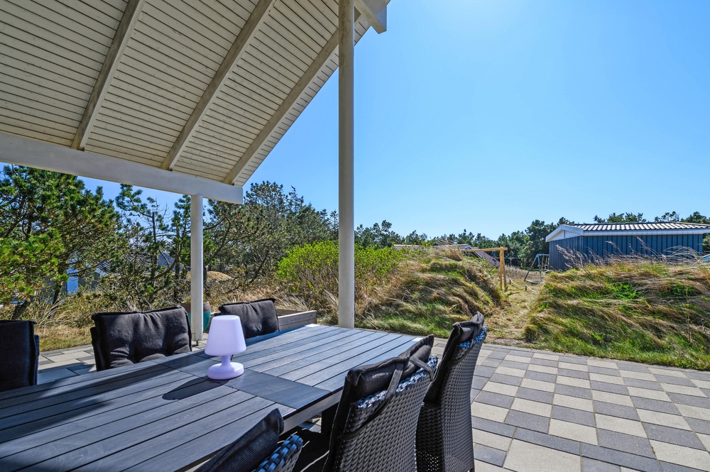 Auf der teilweise überdachten der Terrasse kann man schöne Grillabende mit der Familie verbringen und den frischgefangenen Fisch aus Hvide Sande grillen. Für den gekühlten Wein sorgt der Weinkühlschrank. Im Ferienhaus stehen sowohl ein Kohle- sowie ein Gasgrill zur Verfügung.