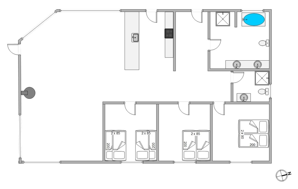 In diesem modernen Ferienhaus habt ihr zwei Badezimmer, wovon eins einen Whirlpool hat, worüber sich die Kinder sicherlich freuen werden. Nach einem langen Spaziergang an einem stürmischen Herbsttag könnt ihr euch in der Außensauna aufwärmen und entspannen. Den Abend könnt ihr perfekt in dem Außen- Whirlpool ausklingen lassen und euch unter der Sternendecke am Himmelszelt entspannen, einfach mal die Seele baumeln lassen.