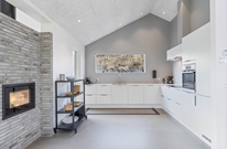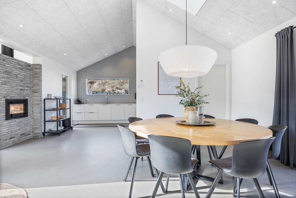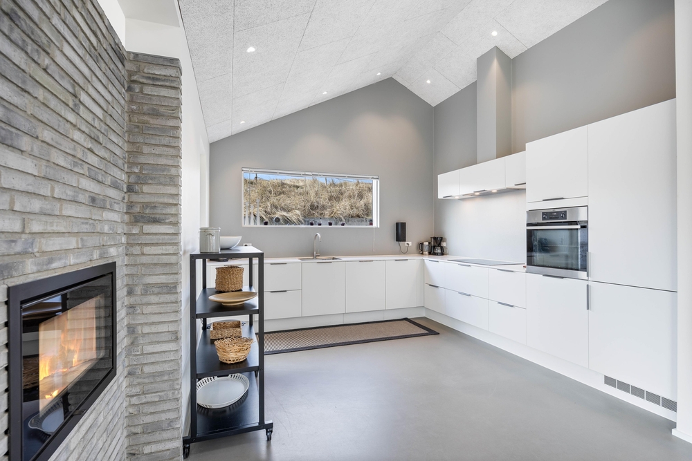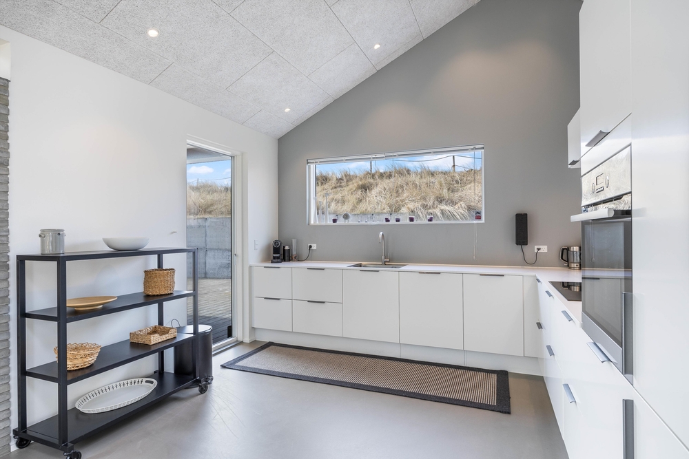 Das zweigeteilte Ferienhaus verfügt im Wohnbereich über eine großzügige Küche, die viel Schrankplatz bietet und offen mit dem Wohn- und Essbereich verbunden ist. Der Essbereich bietet ausreichend Platz für lustige Spielabende mit der Familie oder einem gemütlichen Abendessen mit den Freunden.