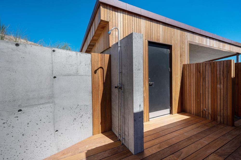 Bei der Außendusche, die von April bis November genutzt werden kann, kannst du Sand und Salz vom Baden am Strand abspülen.
