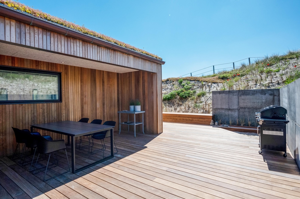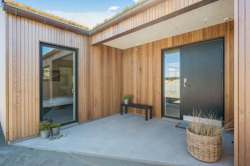Der Terrassenbereich des Domizils im Bjerregårdsvej 397 ist sowohl offen gestaltet, aber auch teilweise abgeschirmt und überdacht. Sie bietet somit Möglichkeit, dass ihr euch sowohl zum gemeinsamen Frühstück mit den Liebsten dort versammelt, den Tag über draußen genießt, während ihr ein Buch lest und die lauen Sommerabende könnt ihr gemeinsam auf der überdachten Terrasse beim gemütlichen Grillen ausklingen lassen.