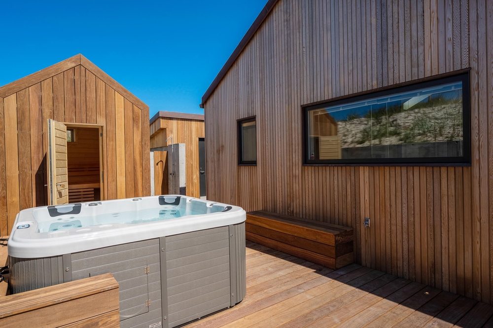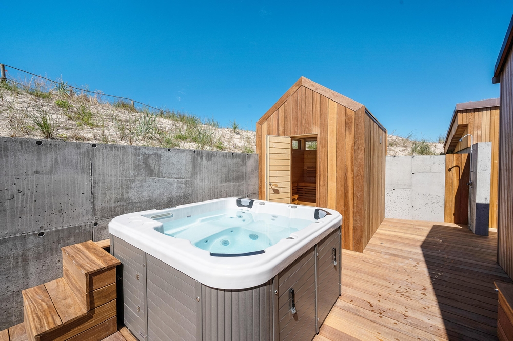 Nach langen Spaziergängen am nur 100m entfernten Strand könnt ihr euch in der Outdoor-Sauna oder Outdoor-Whirlpool entspannen und die Seele baumeln lassen. Auch am Abend lädt der Whirlpool zur Entspannung ein, während ihr den Sternenhimmel genießen könnt ? ein traumhaftes Erlebnis.