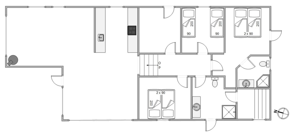 Dieses Haus ist für 6 Personen (und 2 Hunde) ausgelegt und mit insgesamt 112 m² habt ihr mehr als genug Platz. Der große Wohnbereich mit Wohnzimmer, Küche und Essbereich in einem bildet den Kern des Hauses. Vor dem knisternden Holzofen verbringt ihr garantiert viele angenehme Momente mit Filmabenden, einem Gläschen Wein nach dem Abendessen oder heißer Schokolade an einem frostigen Wintertag.