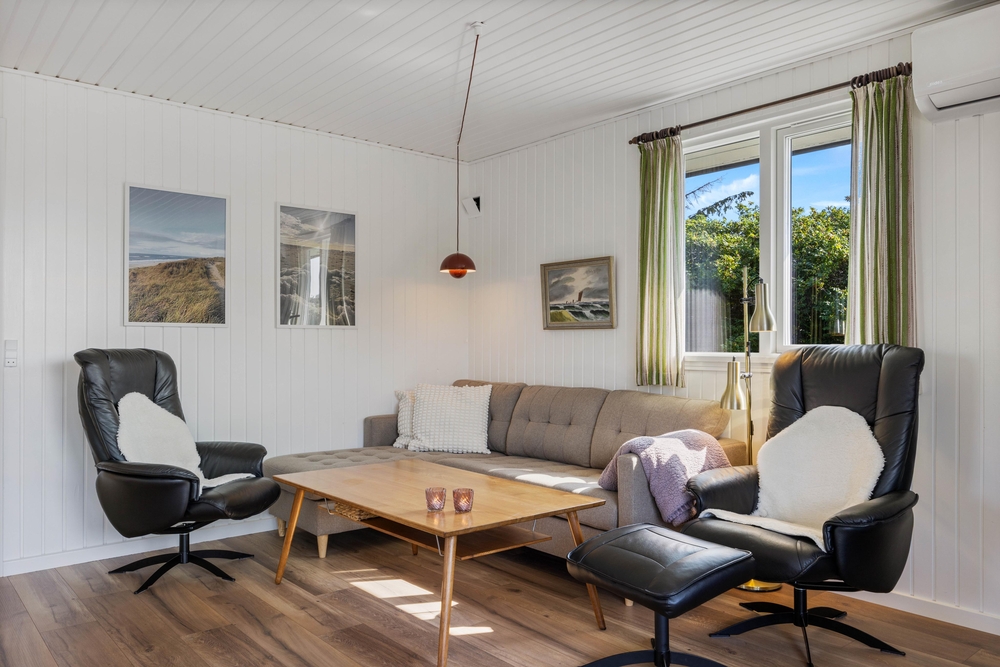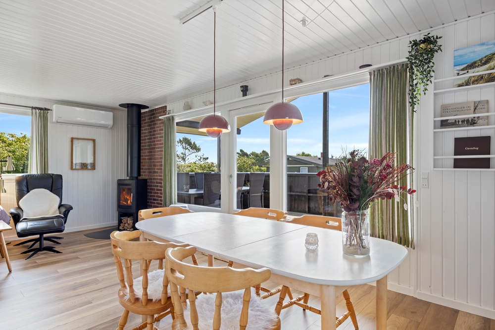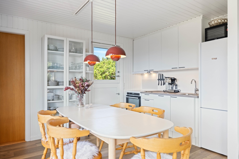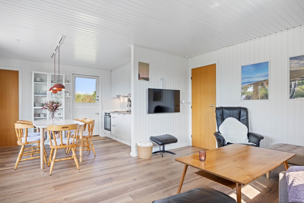 Beim Betreten des Ferienhauses gelangt ihr direkt in das Herz eures Feriendomizils ? den gemütlich und mit Liebe zum Detail eingerichteten Wohnraum. Dieser typisch skandinavisch eingerichtete Raum kombiniert geschickt Küche, Essbereich und Wohnzimmer miteinander. Eine energiesparende Wärmepumpe sorgt für angenehme Temperaturen zu jeder Jahreszeit.