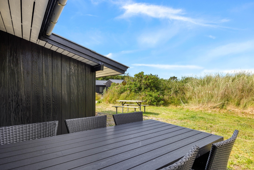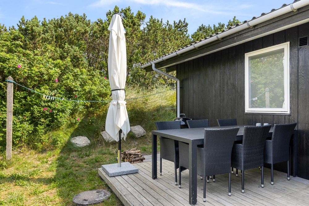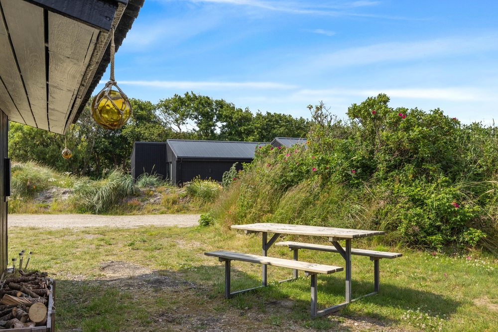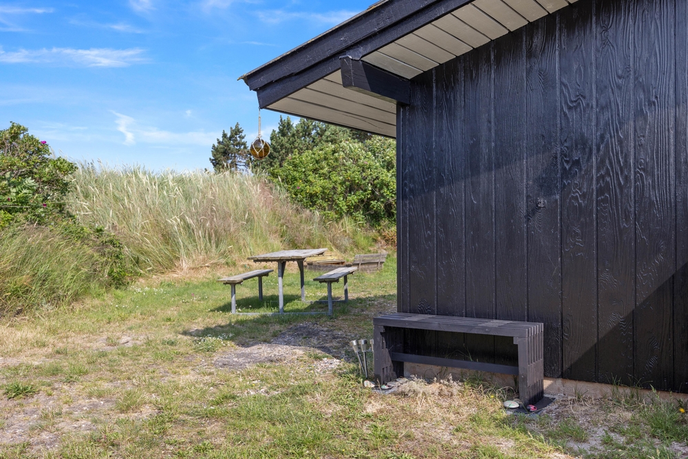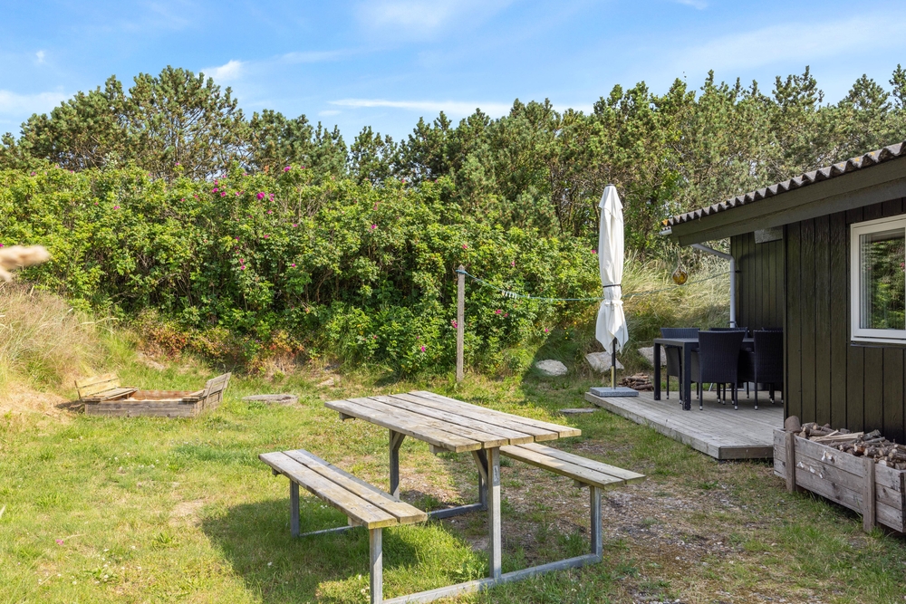 Das Ferienhaus befindet sich auf einem 1399 Quadratmeter großen Rasengrundstück, das Platz für Aktivitäten bietet und teils von Büschen und Bäumen umwachsen ist. Dies bietet euch einen guten Sicht- und Windschutz. Ein Grill sowie Gartenmöbel und Sonnenliegen stehen bereit, damit ihr sonnige Tage und laue Abende im Freien verbringen könnt.