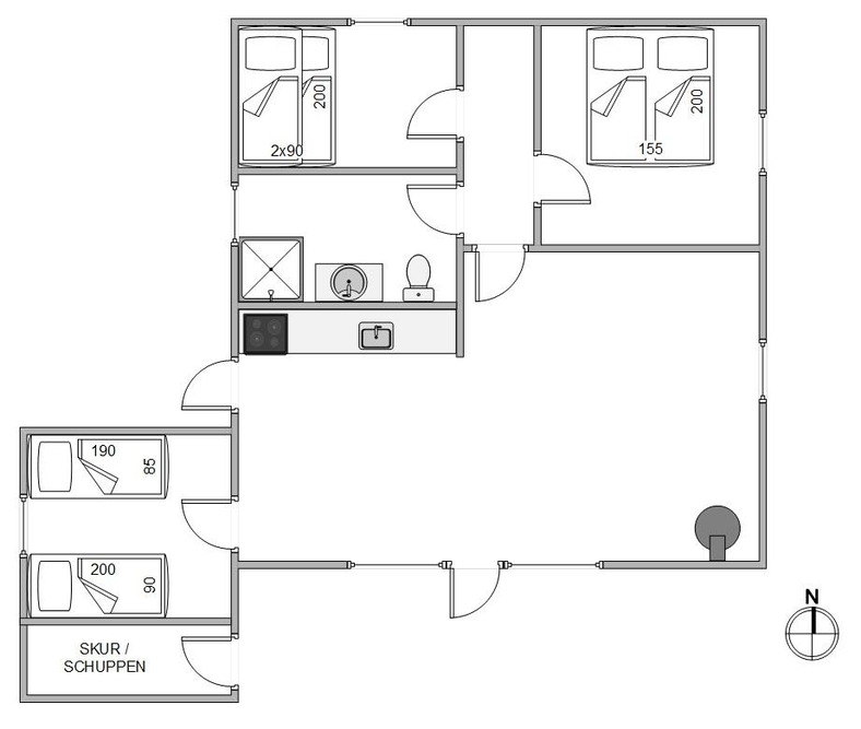 Das Tageslichtbadezimmer wurde mit einer praktischen Dusche versehen. Für die Nachtruhe stehen euch drei gemütliche Schlafzimmer zur Verfügung: eins mit einem komfortablen Doppelbett, eins mit zwei Einzelbetten und ein weiteres mit einem praktischen Etagenbett. Über letzteres werden sich insbesondere eure kleineren Kinder freuen.