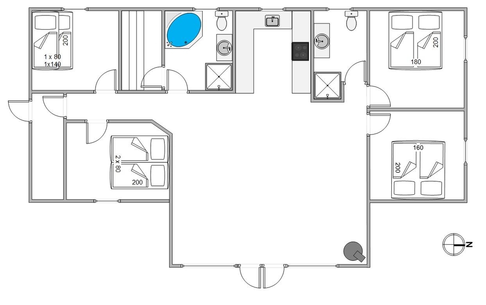 Eine energiesparende Wärmepumpe im Ferienhaus beschert in den kühlen Monaten eine kuschelig-warme Atmosphäre, während diese im Sommer als Klimanlage für Abkühlung sorgt. Für eine erholsame Nachtruhe stehen euch vier Schlafzimmer, ausgestattet mit zwei Doppelbetten und zwei Einzelbetten, sowie einem Hochbett für die Kinder zur Verfügung. Ein kleiner Schreibtisch bietet hier Platz zum Malen und Spielen.