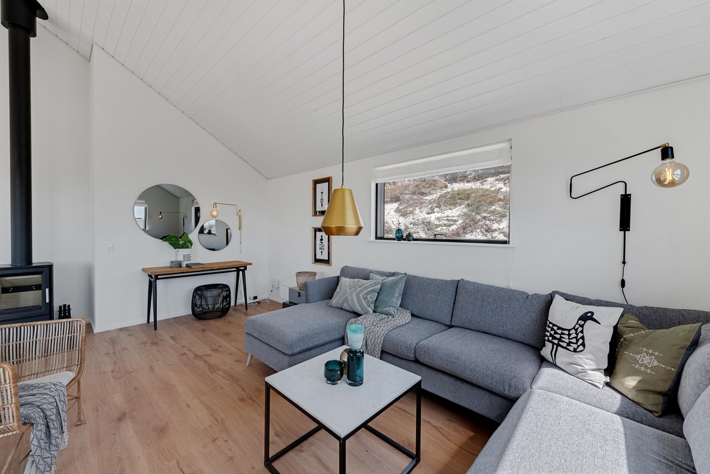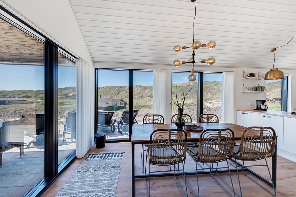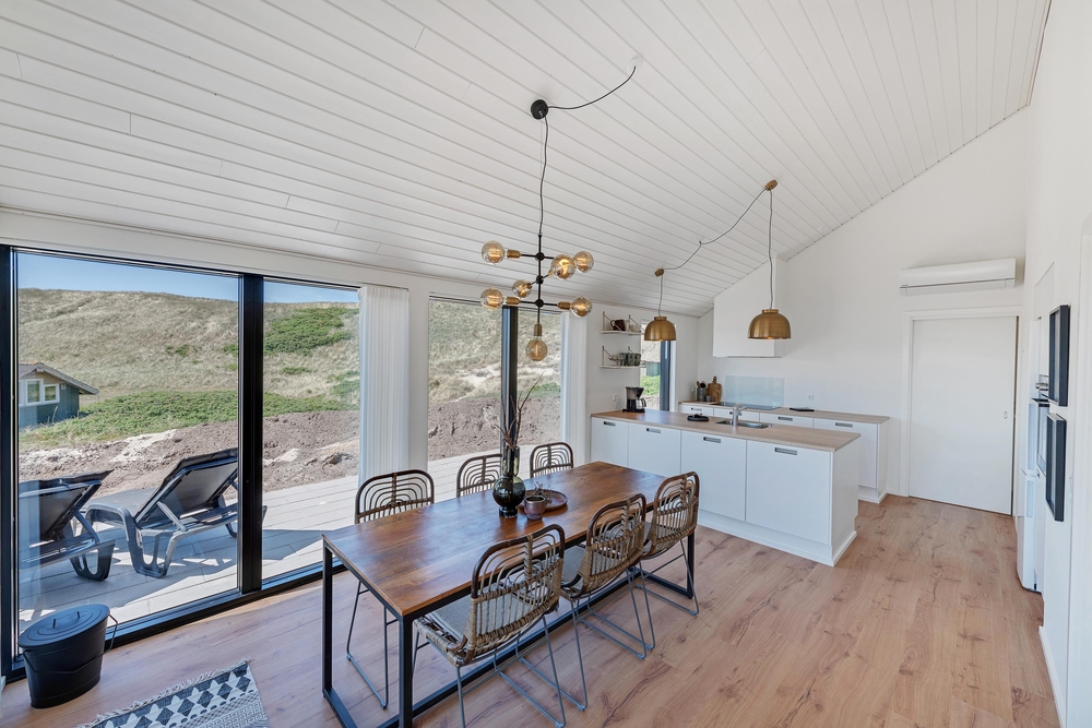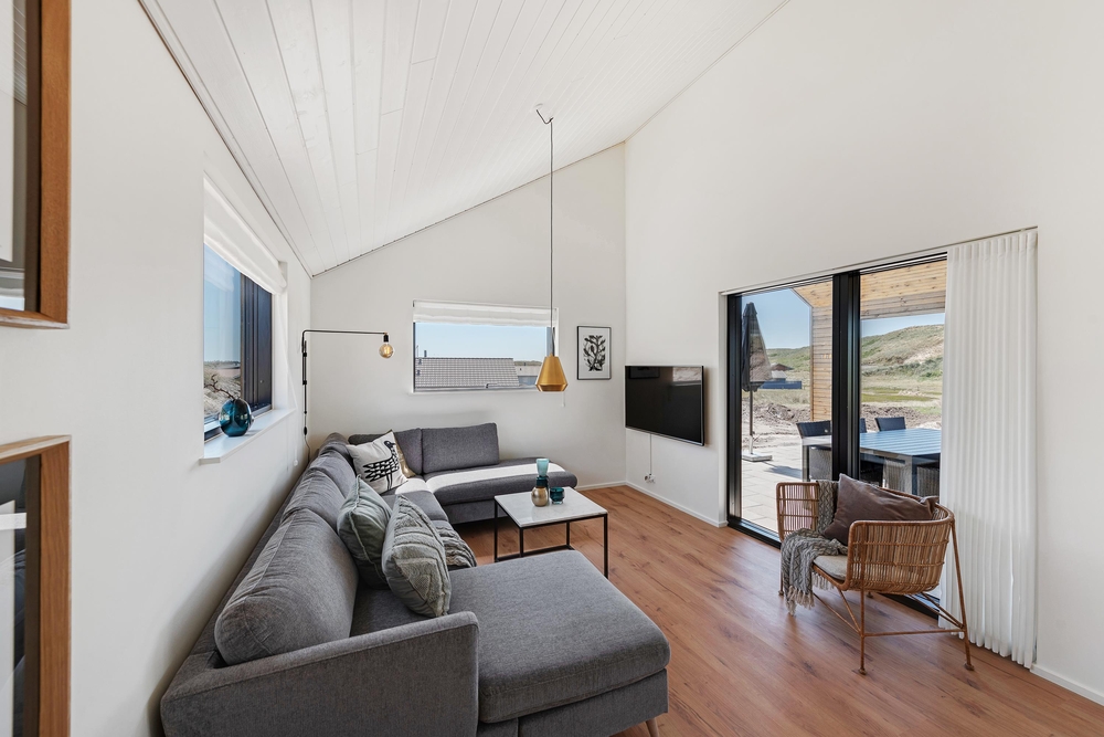 Weiße Wände, große Fensterflächen und hohen Decken. Die 99 stilvollen Quadratmeter bieten Platz für bis zu 6 Personen (und 2 Hunde), und durch die helle Umgebung wirkt das Haus noch größer und sorgt für eine entspannte Urlaubsatmosphäre.
