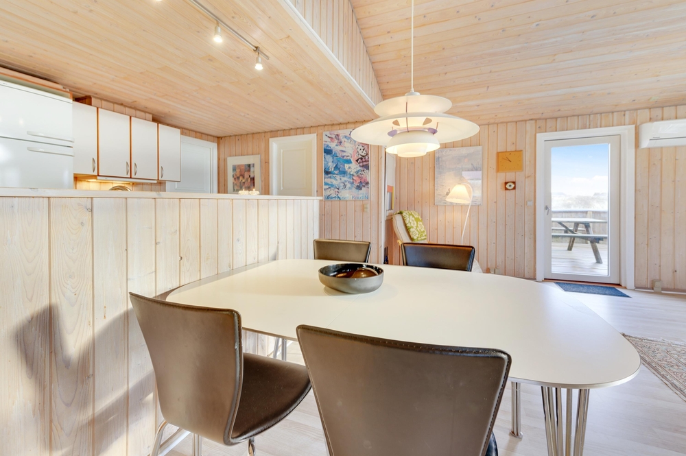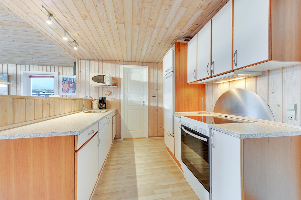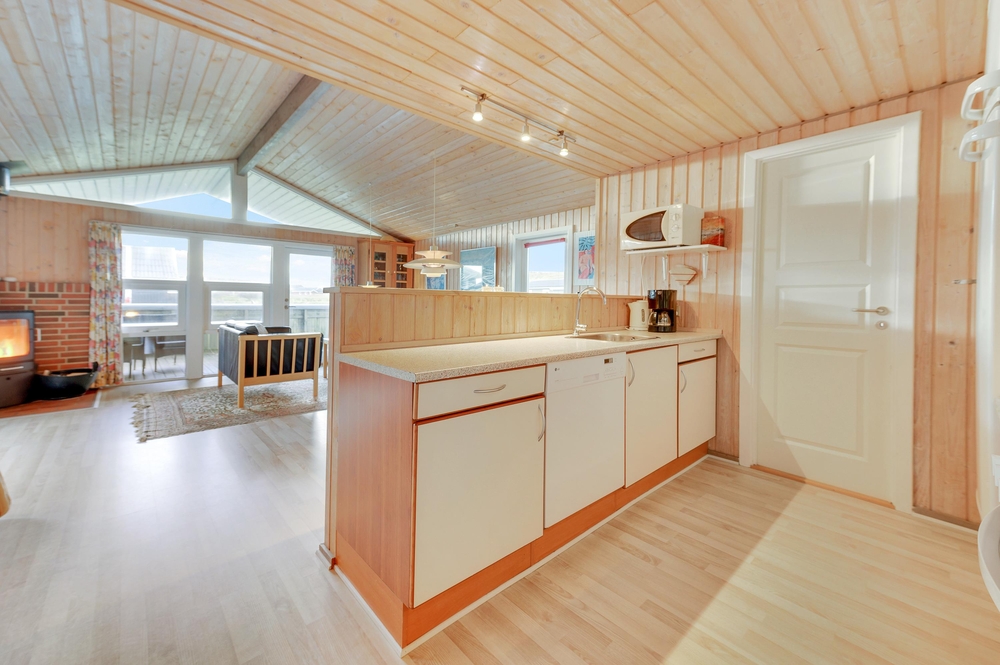 Wenn ihr den Kamin anheizt, verbreitet sich eine entspannende Wärme. Aber auch die energiesparende Wärmepumpe könnt ihr zum Heizen nutzen. Die offene Küche ist mit allem ausgestattet, was es braucht, um das eine oder andere leckere Menü zu zaubern. Probiert doch auch mal ein typisch dänisches Rezept aus. Um den Abwasch kümmert sich der integrierte Geschirrspüler, damit ihr den Urlaubstag entspannt ausklingen lassen könnt.