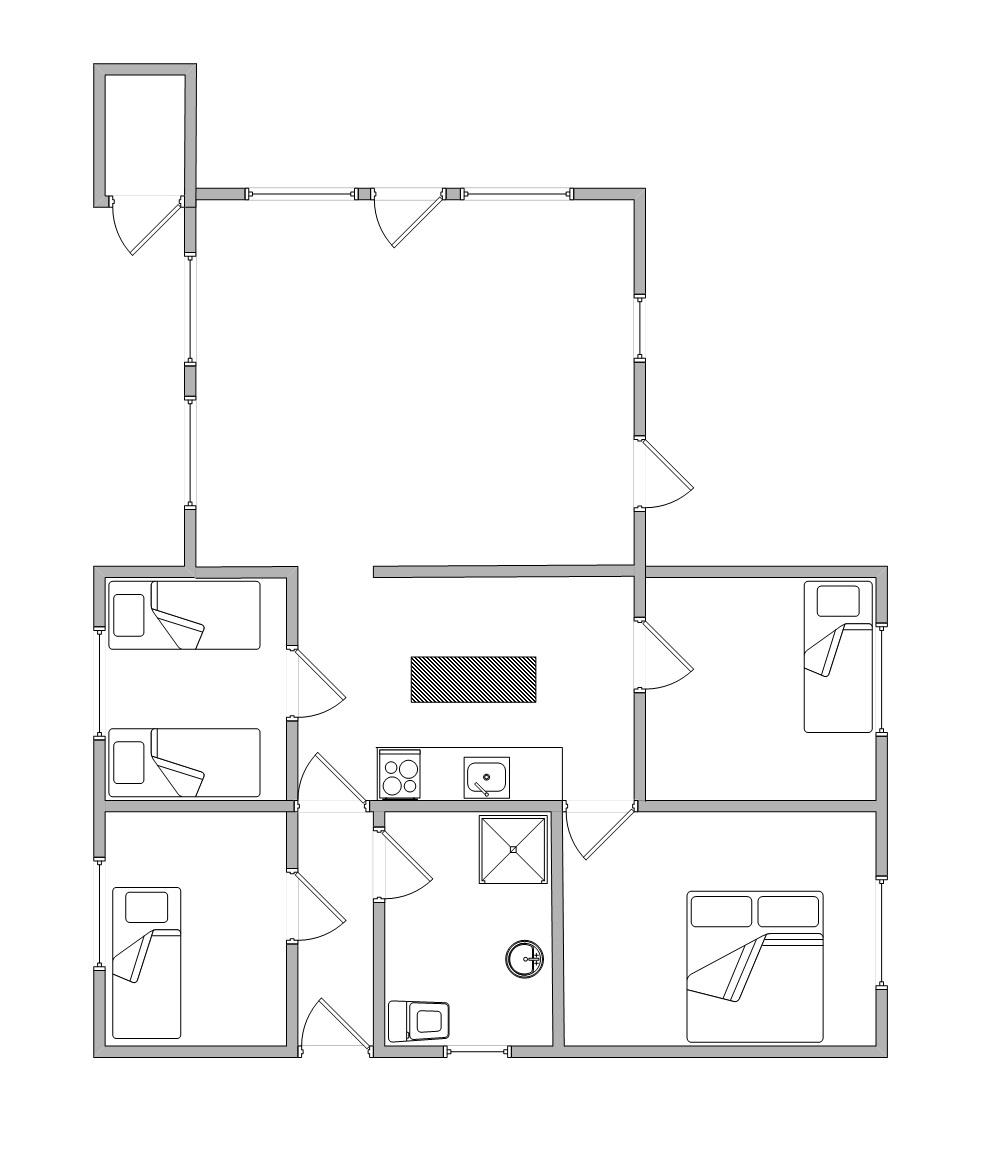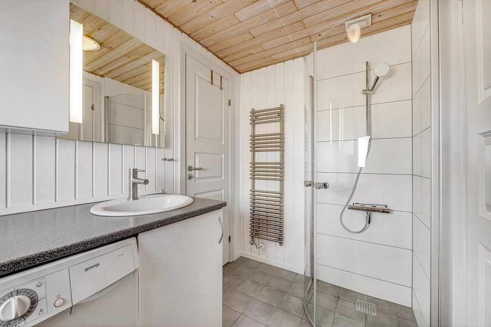 Im modernen Badezimmer findet ihr eine Dusche und eine Waschmaschine. Hier wurde auch eine Fußbodenheizung verbaut, so dass ihr keine kalten Füße fürchten müsst. Auch einen Trockner gibt es in diesem praktischen Ferienhaus. Die 6 Schlafplätze wurden auf ein Schlafzimmer mit bequemen Doppelbett und 3 Schlafzimmer mit gemütlichen Einzelbetten verteilt.