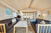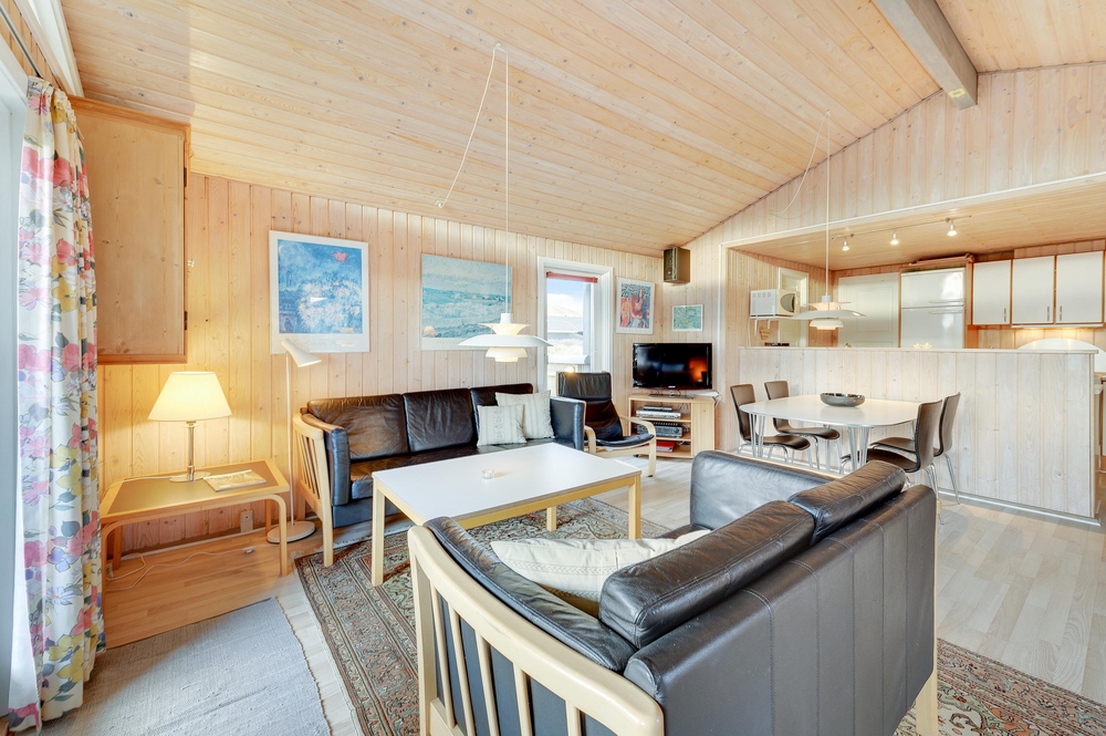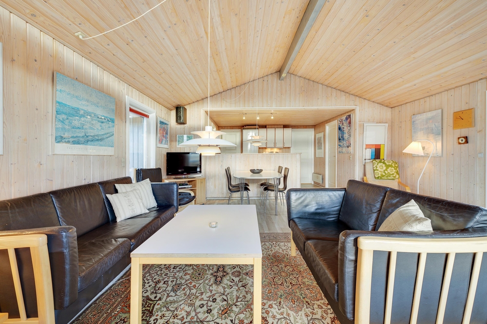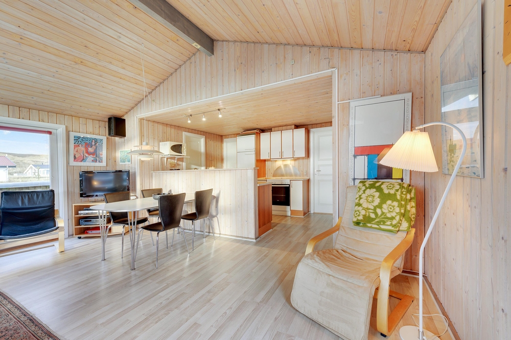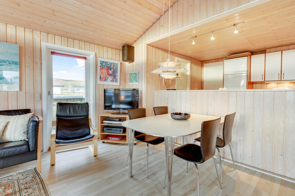 In diesem gepflegten Ferienhaus fühlt man sich direkt beim Betreten wohl. Hier wurde mit viel liebe zum Detail eingerichtet, was den Räumen seinen ganz eigenen Charme verleiht. Überall wurde viel helles Holz verarbeitet, so dass ein angenehmes Raumklima entsteht. Im offenen Wohnbereich mit Essplatz und anliegender Küche könnt ihr euch auf gesellige DVD-Abende vorm Fernseher freuen.