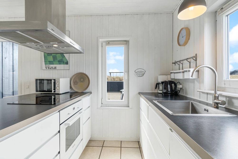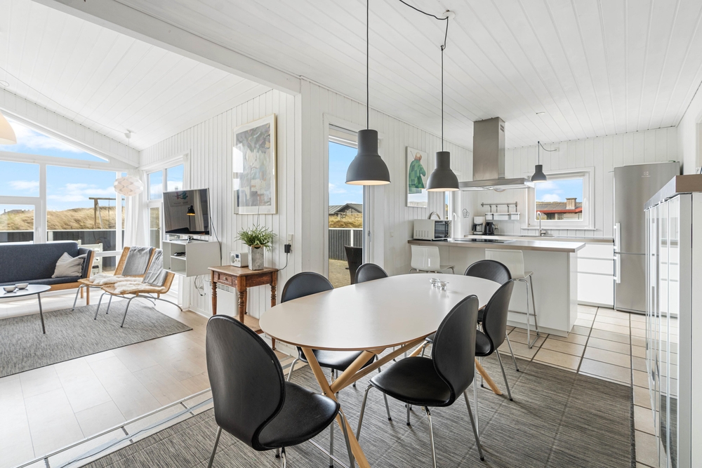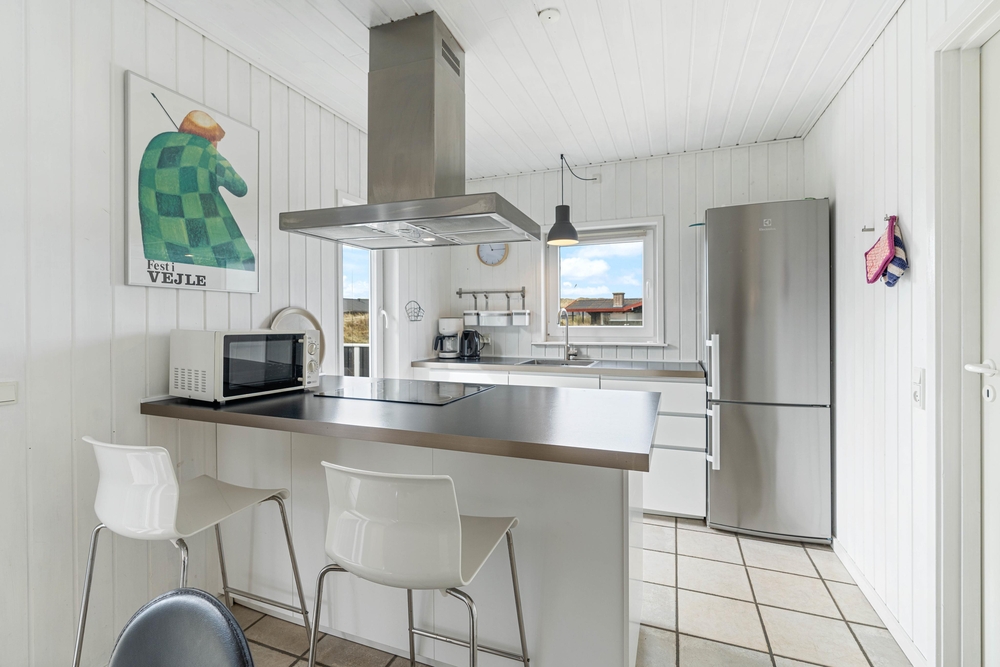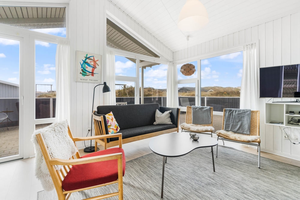 Im Bjerregårdsvej 418 liegt euer sehr geschmackvoll eingerichtetes Ferienhaus, das auf einem Naturgrundstück nah an der dänischen Nordsee liegt. Von der großen, teilweise überdachten Terrasse kann man die wunderschöne Aussicht genießen und dem beruhigenden Rauschen des Meeres lauschen. Eine energiesparende Wärmepumpe hält die Stromkosten gering und sorgt für eine angenehme Temperatur im Wohnbereich.