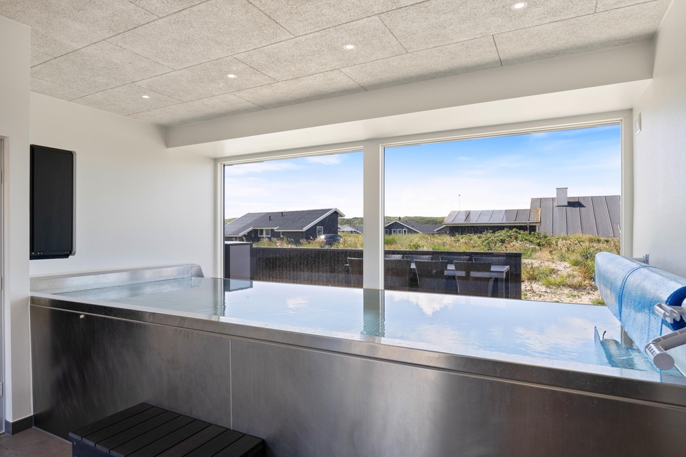 Wollt ihr euch am Abend lieber entspannen oder austoben? In diesem Ferienhaus wird euch beides geboten. Entspannung findet ihr in der Dampfkabine und im Pool, von denen ihr den Aublick durch die großen Panoramafenster auf die Sanddünen oder den Sonnenuntergang genießen könnt. Ein besonderes Highlight bei diesem Ferienhaus ist die Kaltwasserbadetonne. Der Pool hat eine Tiefe von 50 cm und ist daher ideal zum Entspannen oder Plantschen mit euren kleineren Kindern.