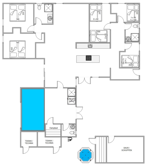 Herzlich Willkommen in diesem im Jahre 2024 neu erbauten Luxus-Ferienhaus im Bjerregårdsvej 424. Auf 180 modern und im typisch skandinavischen Stil eingerichteten Quadratmetern finden bis zu 14 Personen und eure beiden Hunde ein Zuhause auf Zeit.