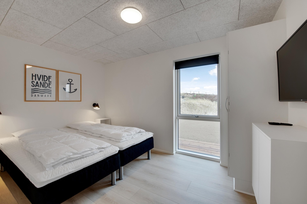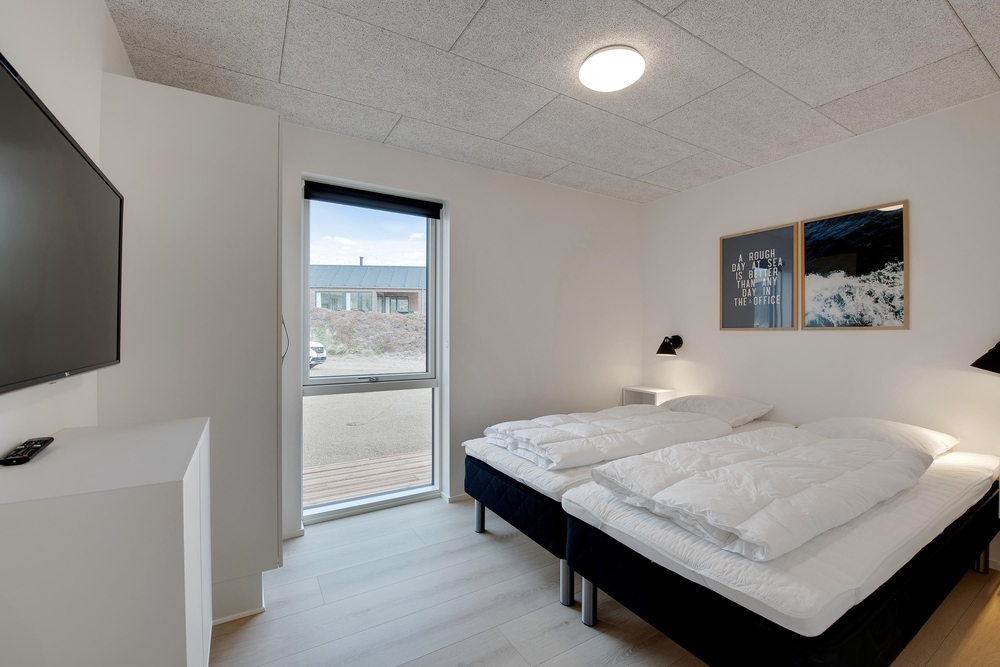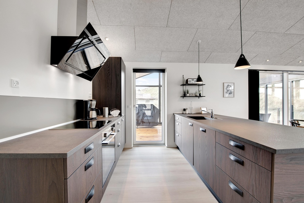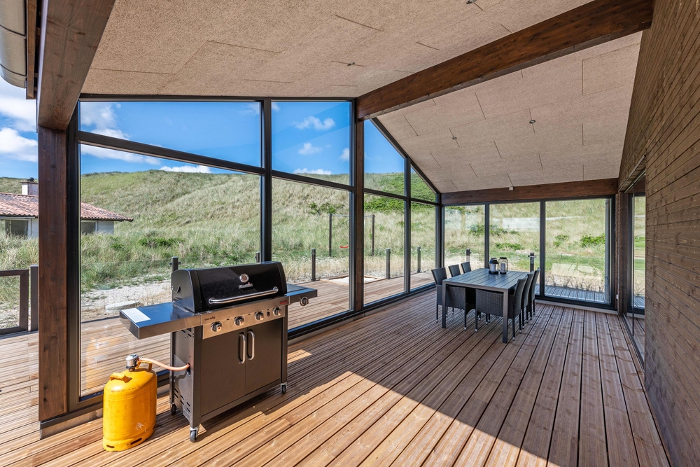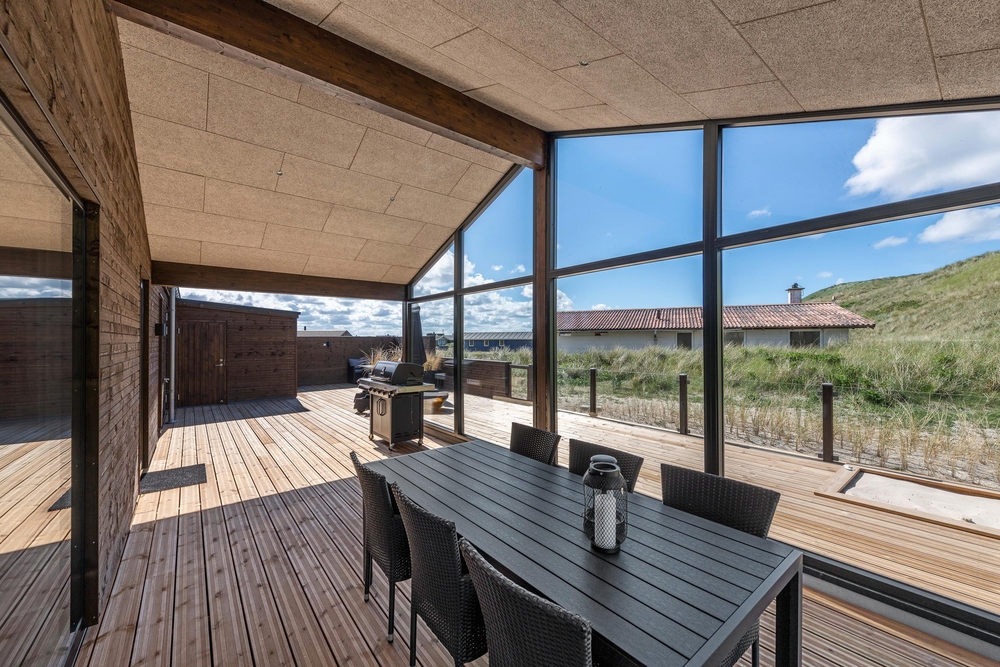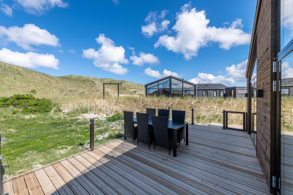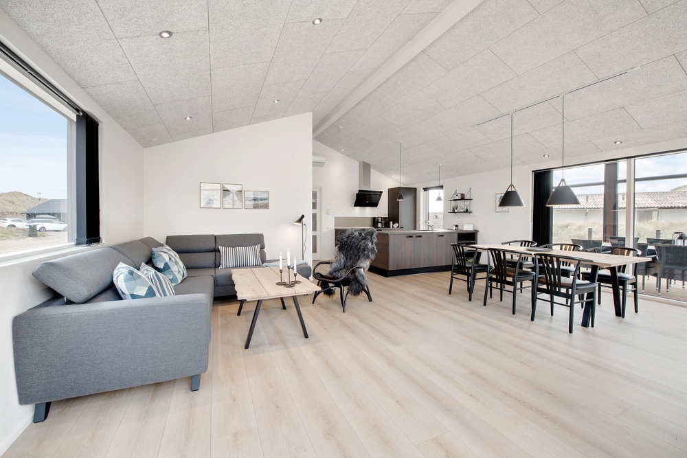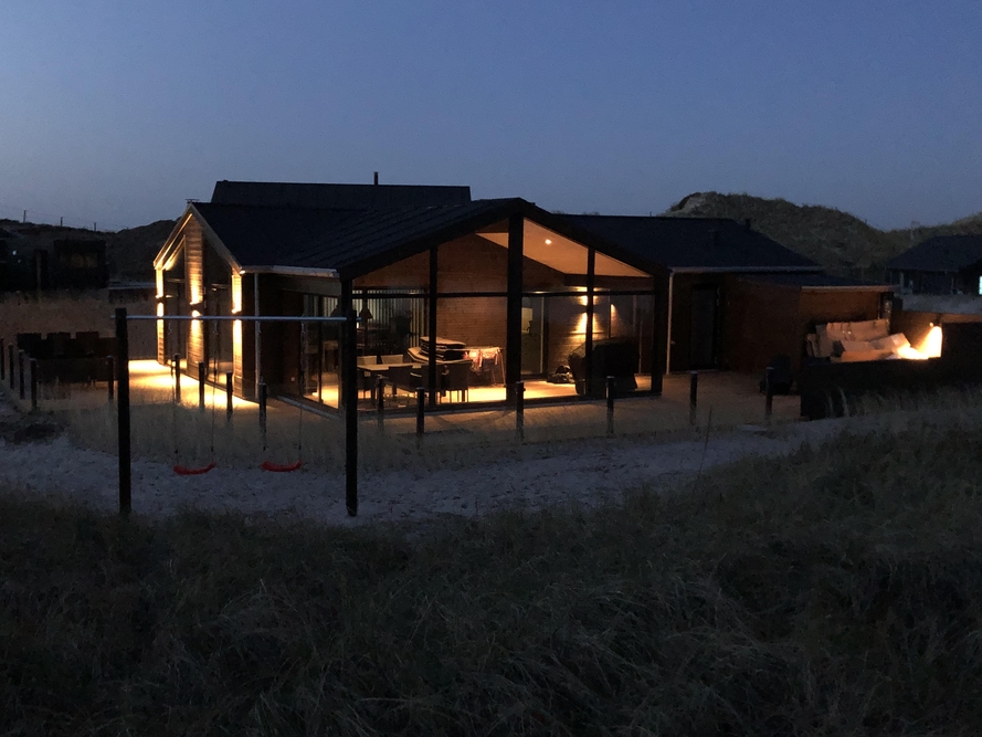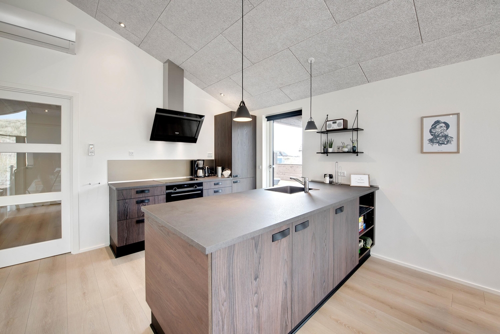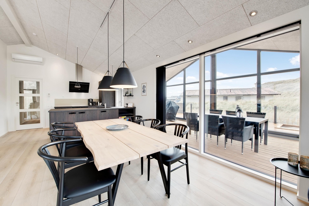Die grossen Panoramfenster lassen viel Licht und Sonnenschein ins Haus und machen die schöne Umgebung noch einladender. Besonders der lichtdurchflutete Wohnraum mit der offenen Küche ist hell und freundlich und lädt zu vielen schönen Ferienstunden ein. Die moderne Küche lässt die Herzen der Hobbyköche höher schlagen. Hier könnt Ihr, mit Aussicht auf die umliegende Dünenlandschaft, die leckersten Ferienmahlzeiten zubereiten. An kühleren Tagen sorgt der knisternde Kaminofen für eine wohlige Wärme, während draussen vor den grossen Panoramafenstern, fast zum Greifen nah, der rauhe Westwind das Dünengras zerzaust.