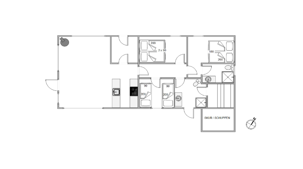 Nur eine einzige Düne trennt Euch vom herrlichen feinsandigen Nordseestrand, der zu jeder Jahreszeit Gross und Klein magisch anzieht. Wenn es Euch auf der Terrasse zu warm wird, dann schnappt euch ein Handtuch, geht über die Düne und erfrischt euch in der kühlen Nordsee. Sand und Salz wird danach einfach unter der Aussendusche abgespühlt, die von April bis November genutzt werden kann.