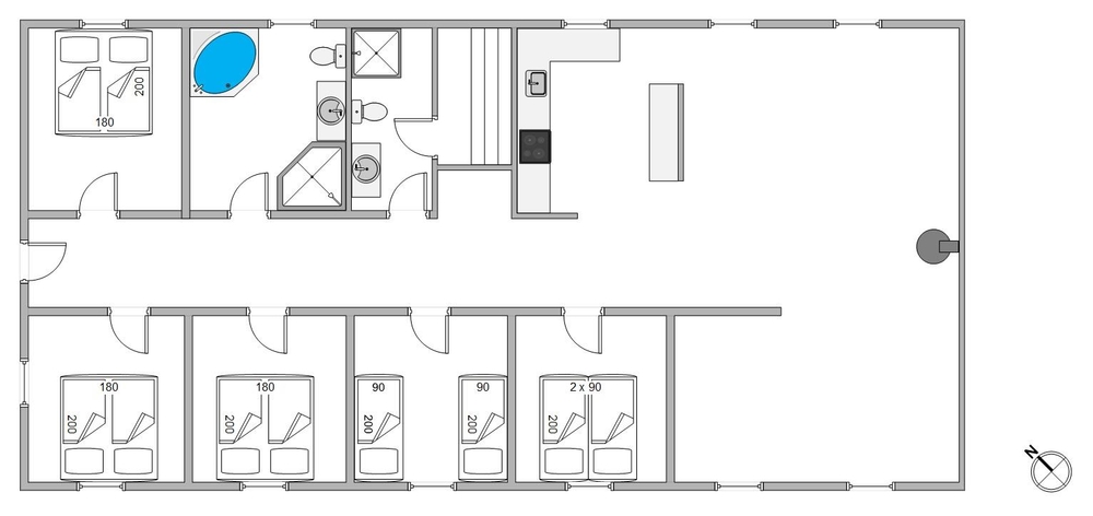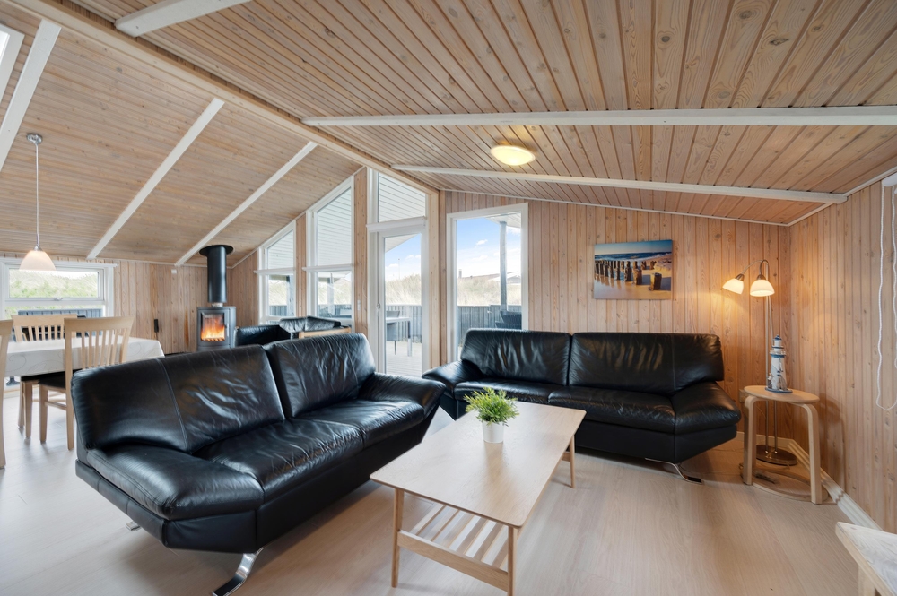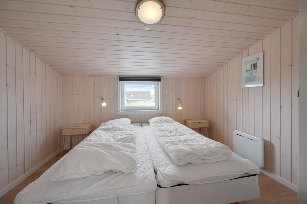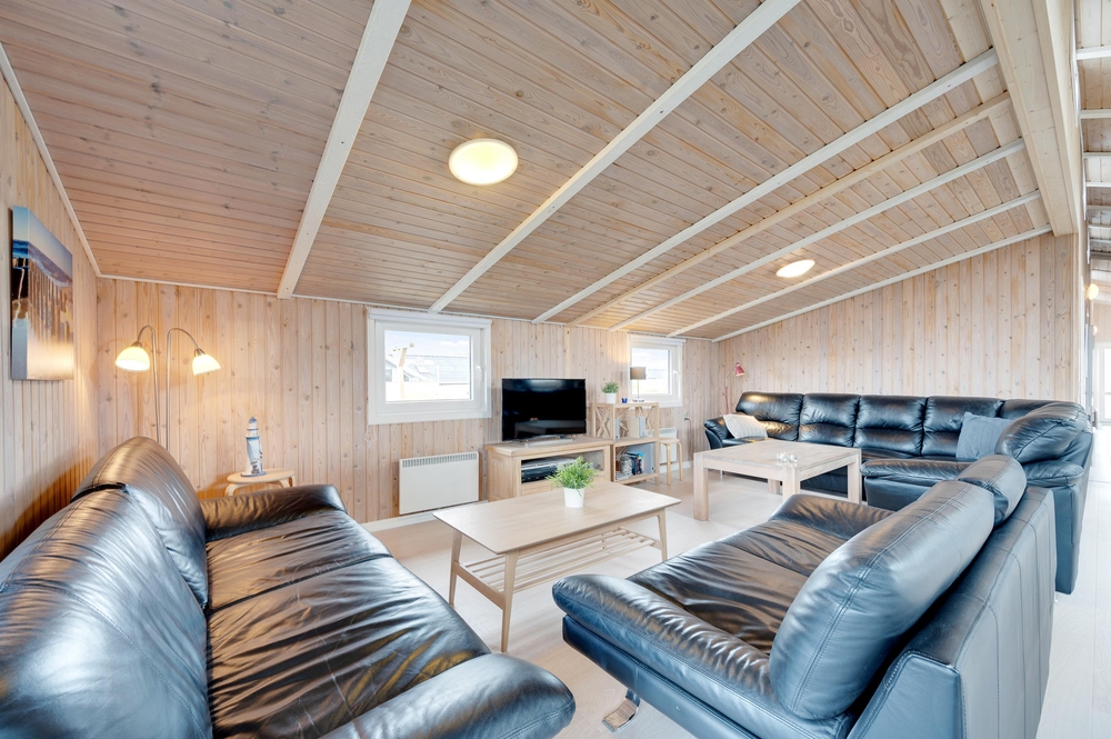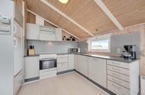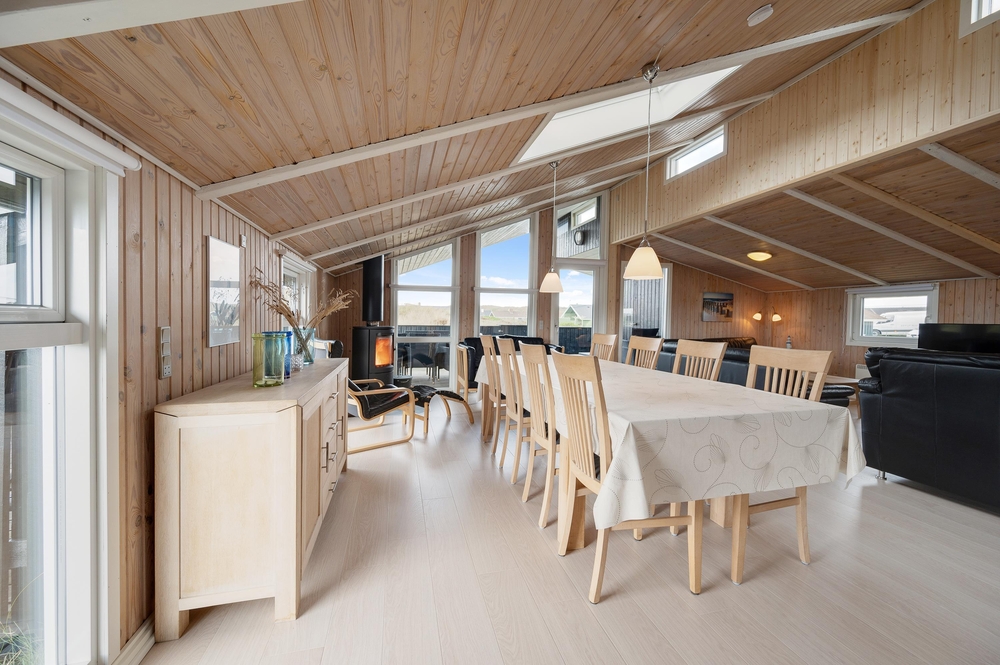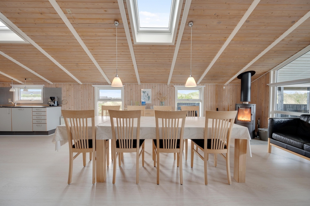 Dieses geräumige Holzhaus mit Waschmaschine und Geschirrspüler liegt nah am feinen Sandstrand von Bjerregård. Insgesamt gibt es fünf einzelne Schlafzimmer, drei davon sind hierbei mit Doppelbetten ausgestattet und in den anderen beiden stehen jeweils zwei Einzelbetten.