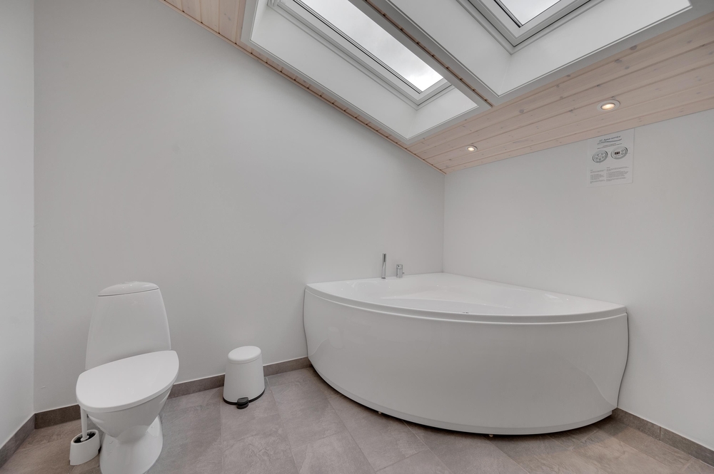 Das Ferienhaus strahlt in hellen und freundlichen Farben und Dachfenster sorgen für eine lichtdurchflutetete, angenehme Atmosphäre im gesamten Wohnbereich. Nach einem aufregenden Ferientag könnt ihr euch in das Badezimmer zu ein paar entspannten Wellnessmomenten im Whirlpool und in der Sauna zurückziehen.
