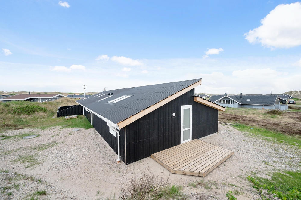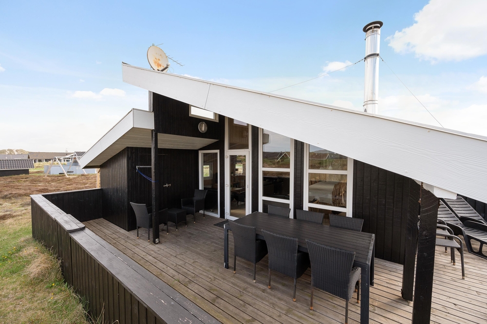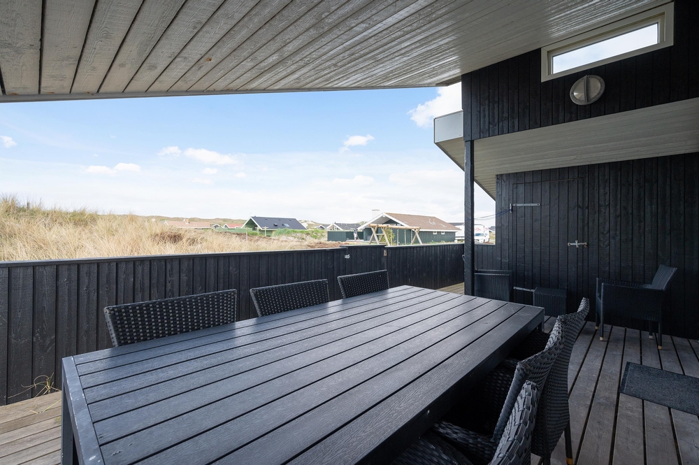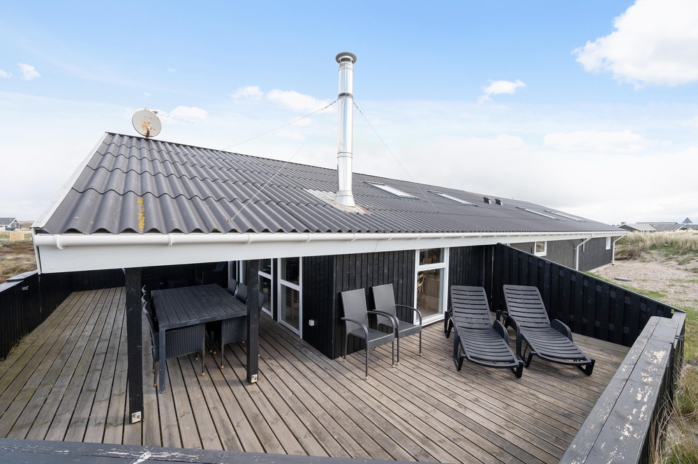Dieses Ferienhaus hat eine geschlossene und nach Südwesten ausgerichtete Terrasse, die teilweise überdacht und abgeschirmt ist. Richtung Osten gibt es noch eine kleinere Terrasse, die auch teilweise abgeschirmt ist. Die Nordsee kann man auf der Terrasse hören und bis zum Strand sind es nur knapp 400 Meter.