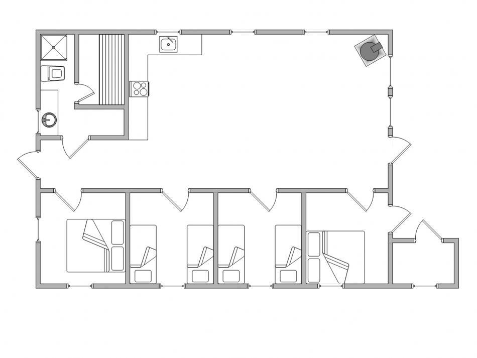 Beisammensein wird in diesem Ferienhaus an vorderster Stelle stehen: Die offene Küche ist mit dem Wohnbereich verbunden und mit Gefrierschrank (50L), Geschirrspüler und eine Mikrowelle ausgestattet. Praktisch: Im Ferienhaus gibt es zwei Badezimmer.