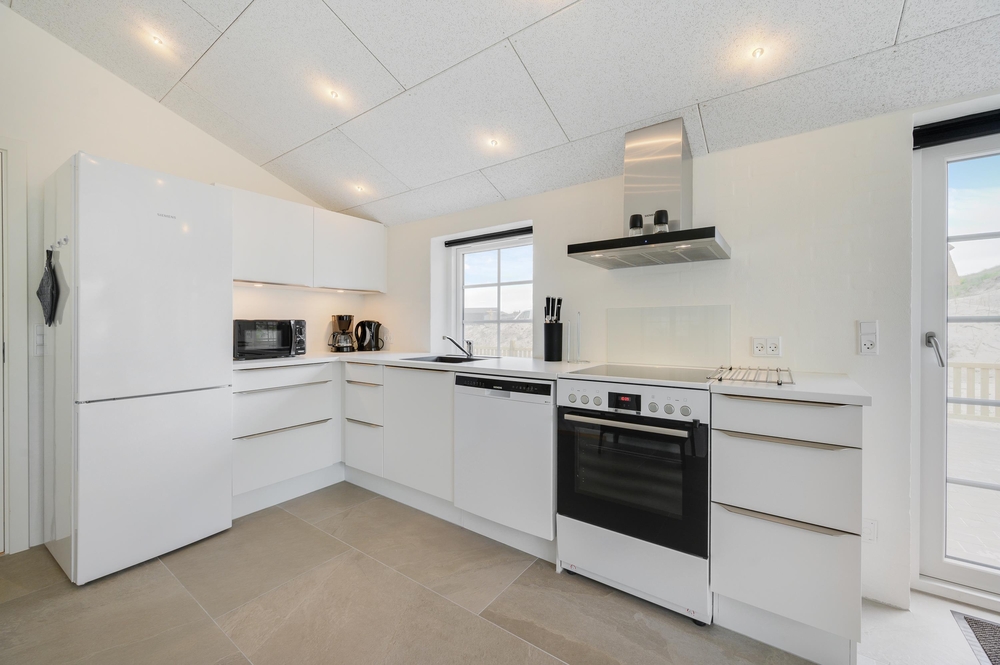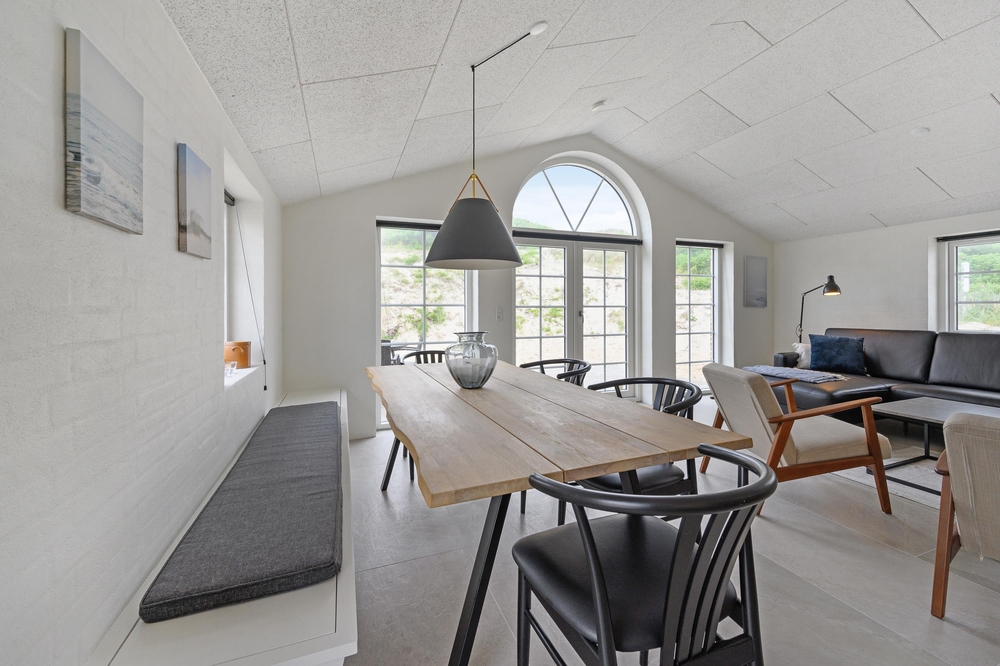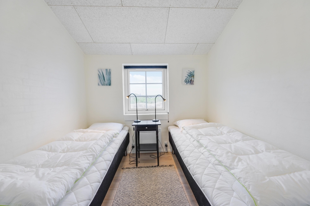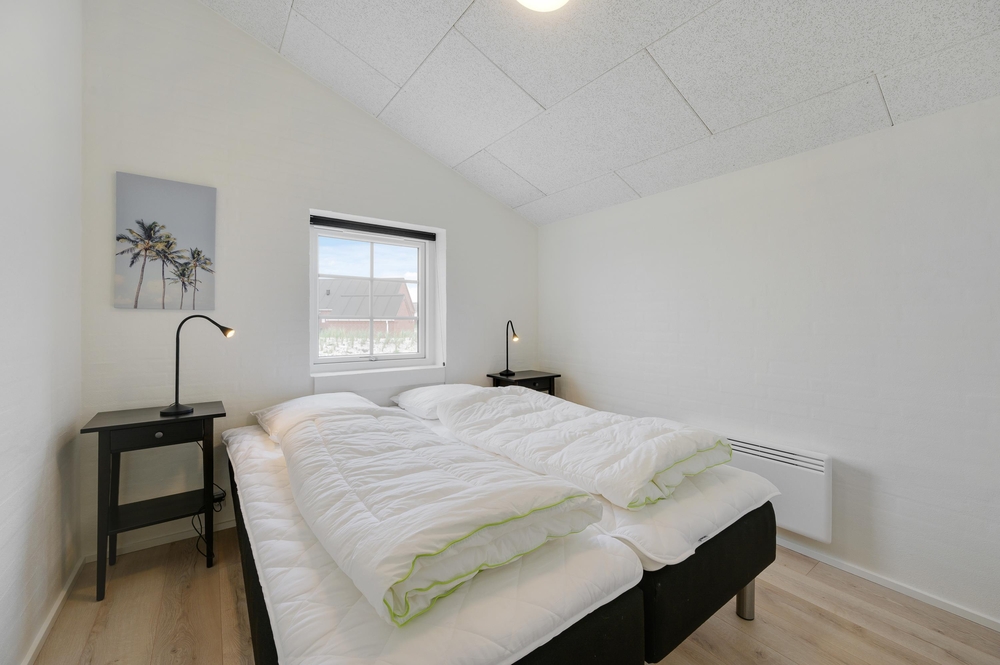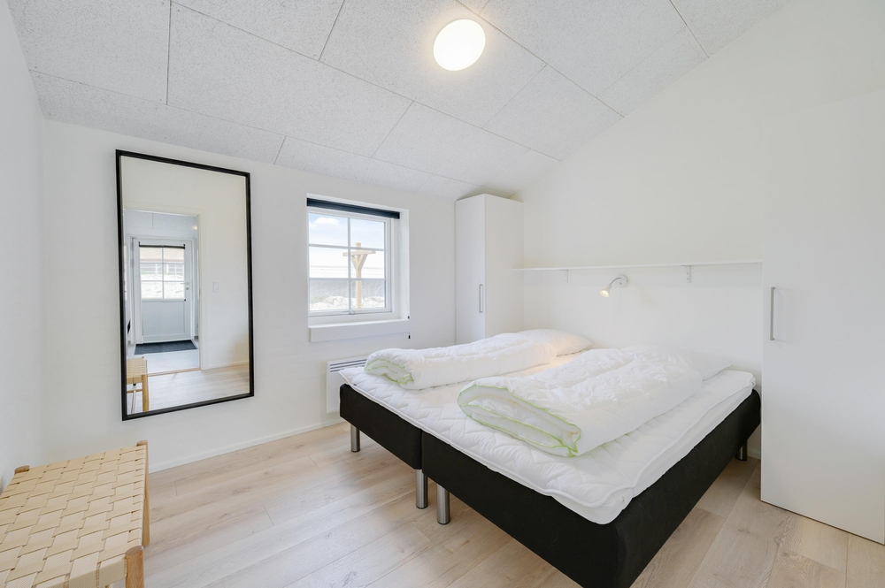 Das lichtdurchflutete, moderne Sommerhaus auf Bjerregårdsvej 474 bietet sich für einen wunderschönen Urlaub mit der ganzen Familie an. Bis zu 6 Personen können sich auf 3 Schlafzimmer verteilen, wovon zwei mit Doppelbetten und das dritte mit zwei Einzelbetten eingerichtet sind.